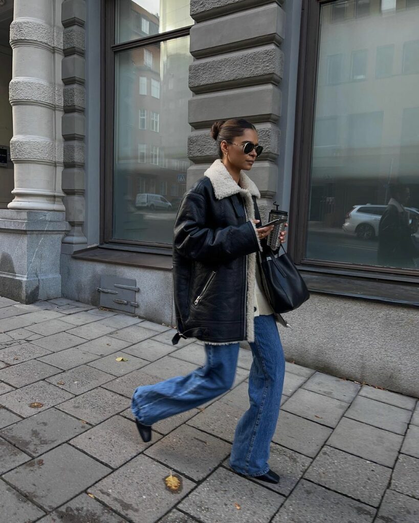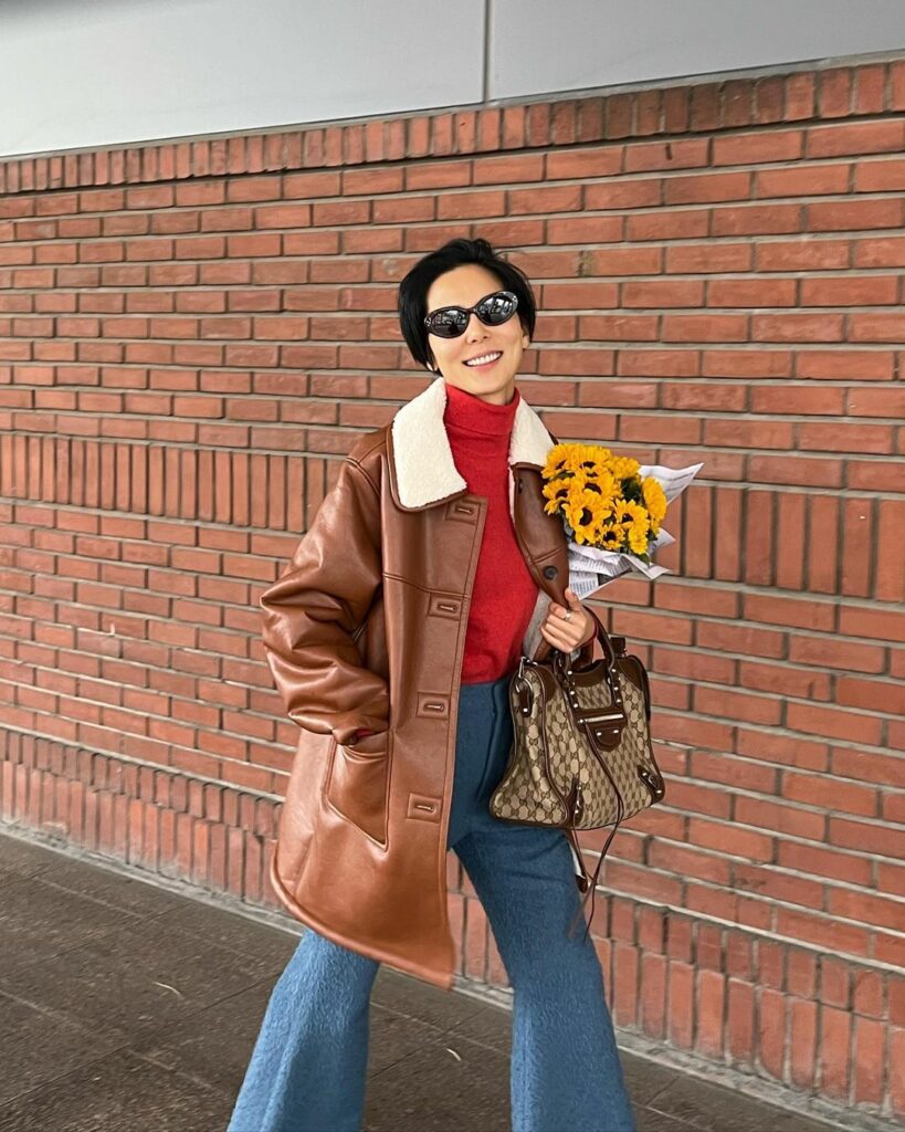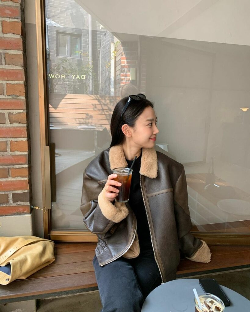 However, with subtle details, this jacket can easily showcase a feminine allure. As it inherently possesses a strong presence, there’s no need to overthink complex and diverse outfits when paired with a shearling coat.