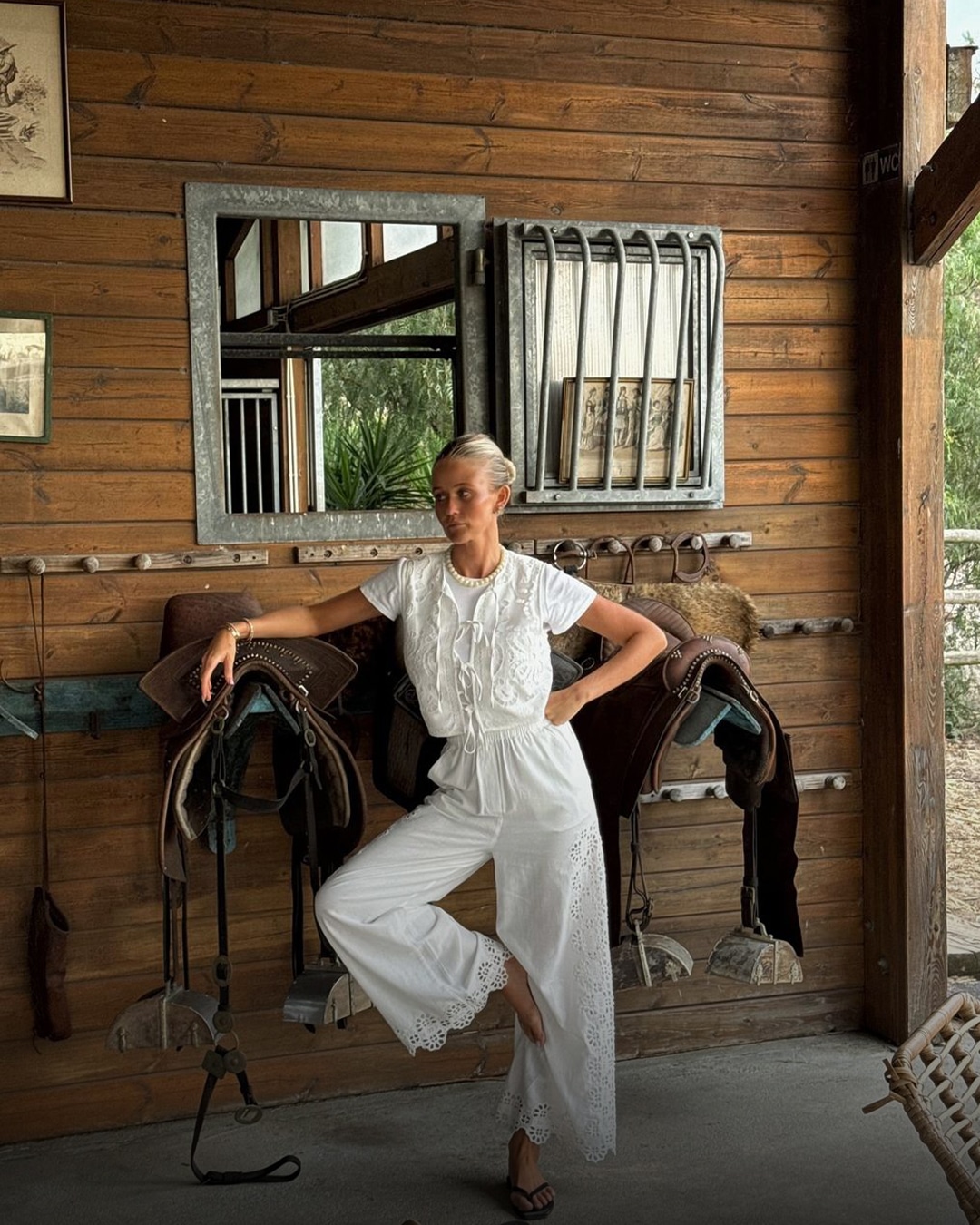 βœ”οΈ Pair a loose white denim with a t-shirt and a cardigan draped over the shoulders or tied around the waist to achieve a summer version of the old money look.