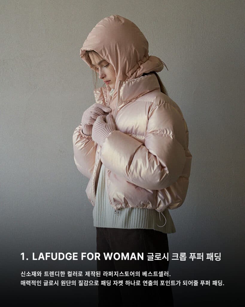 La Fudge Store’s bestseller crafted with new materials and trendy colors. A charming puffer padding with the texture of attractive glossy fabric, serving as the focal point of your outfit with just one padding jacket.