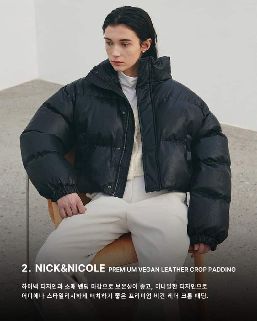 High-neck design and sleeve binding for good insulation. A premium vegan leather crop padding with a minimalistic design, suitable for stylish matching anywhere.