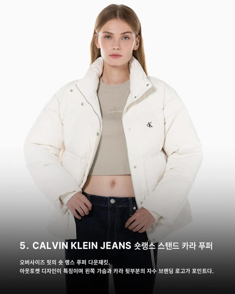 5️⃣ @calvinklein Short Length Stand Collar Puffer