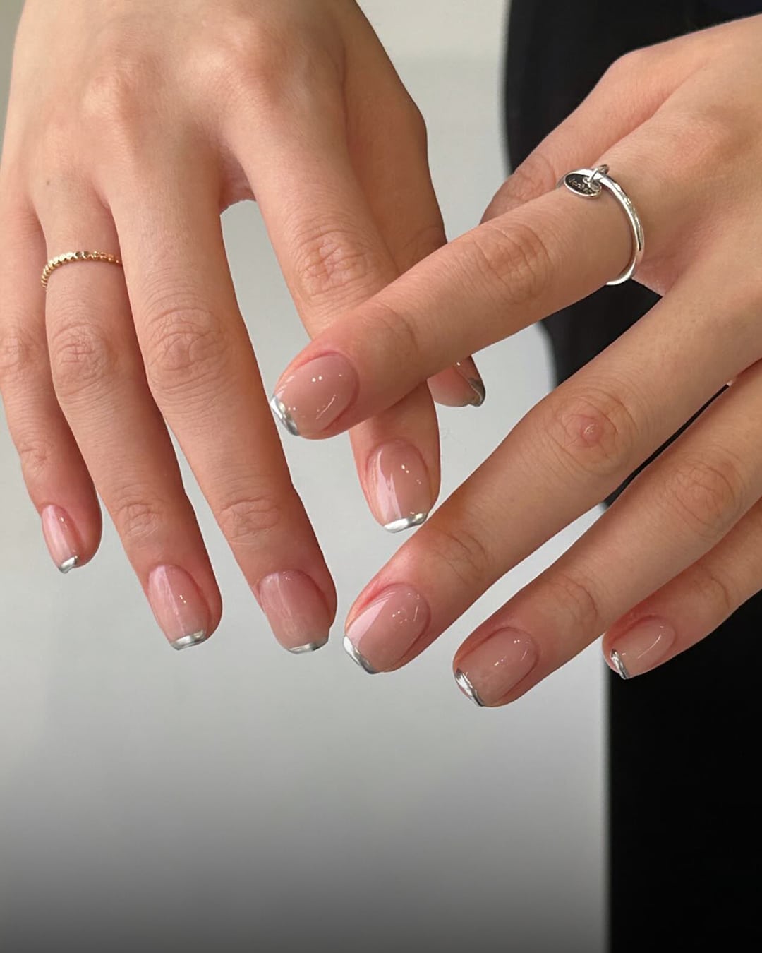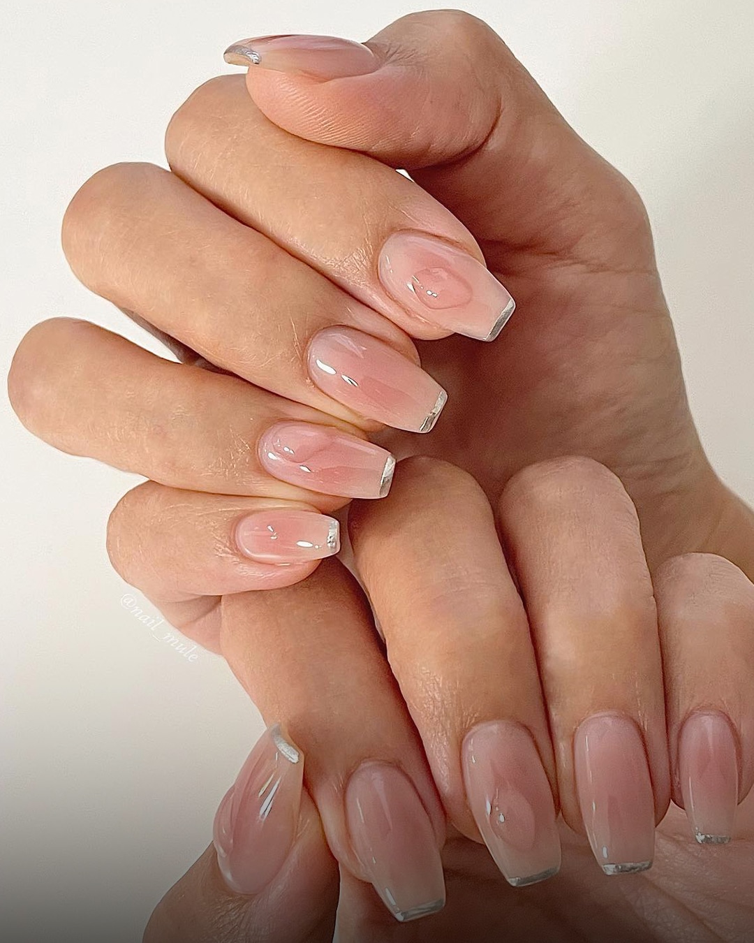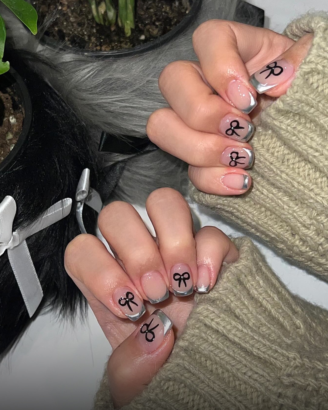 But French nails are no longer just about adding a thin line of color to the tips! You can fill in the tips with silver to create a metallic look, or draw ribbons along the borders for a unique balletcore-inspired nail design.
