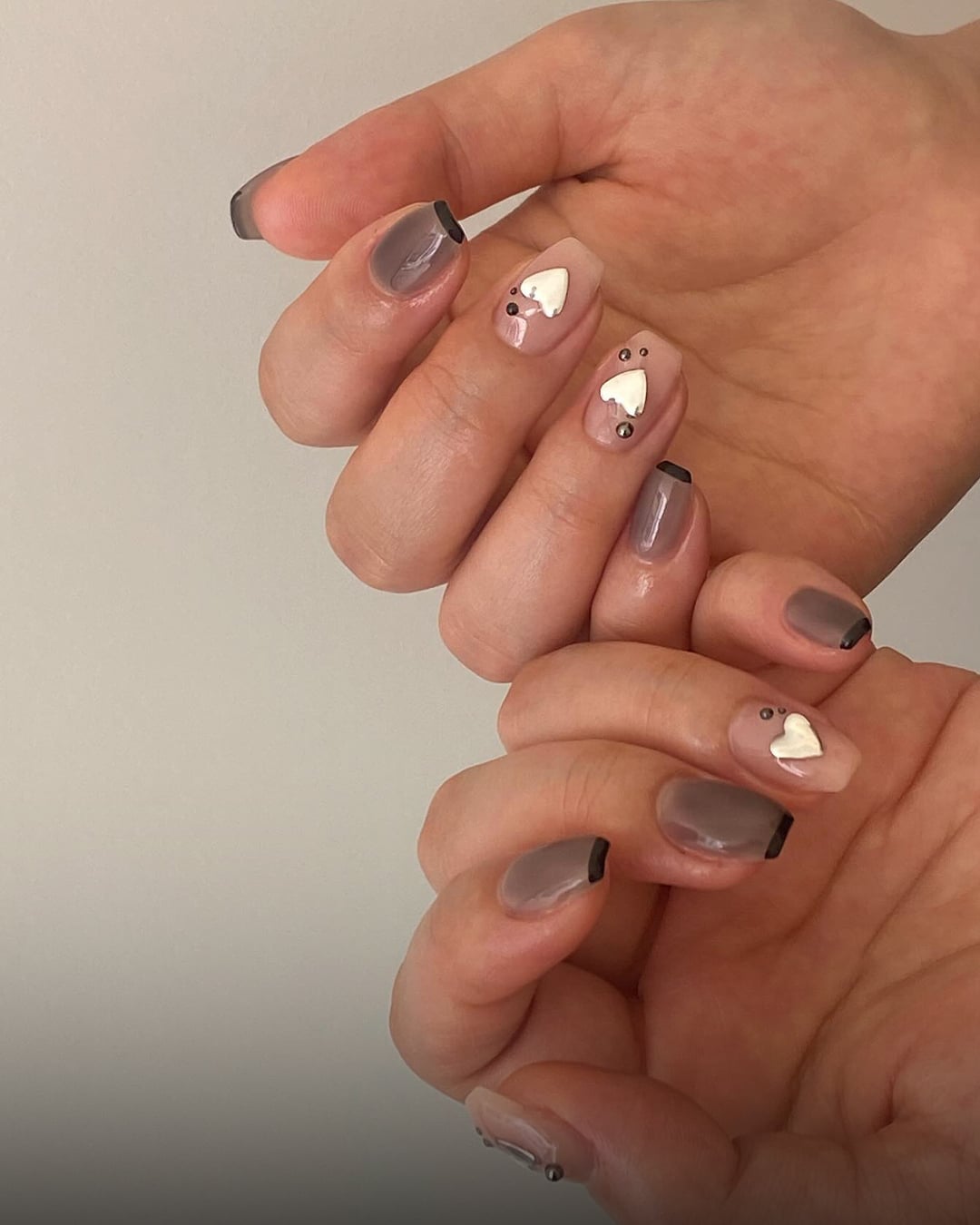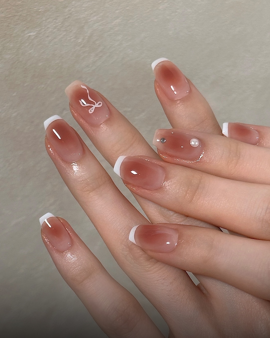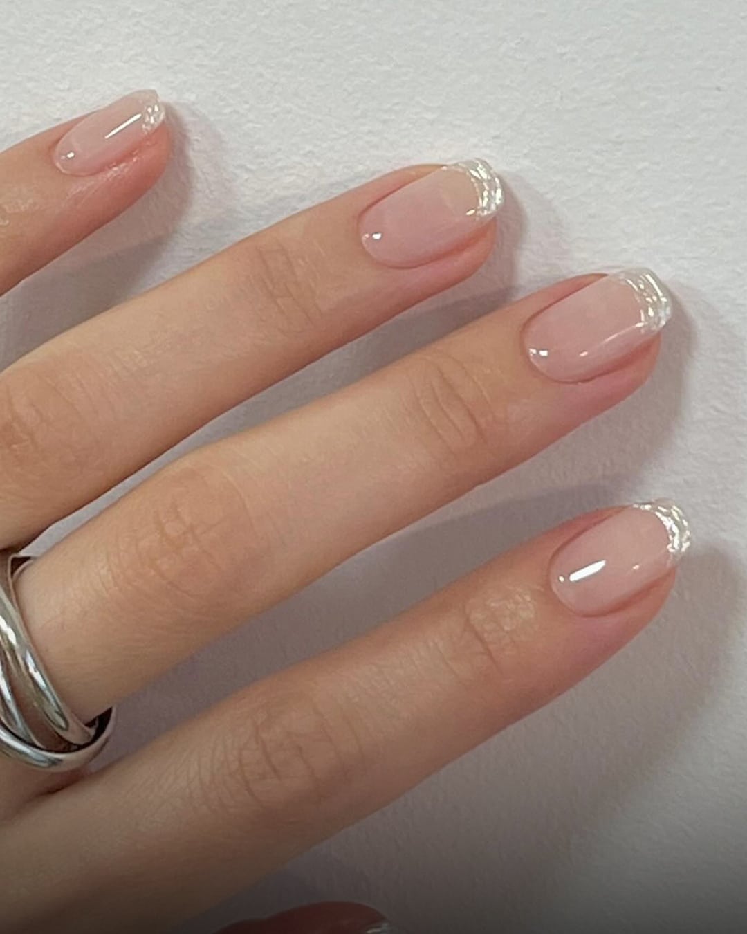 But French nails are no longer just about adding a thin line of color to the tips! You can fill in the tips with silver to create a metallic look, or draw ribbons along the borders for a unique balletcore-inspired nail design.