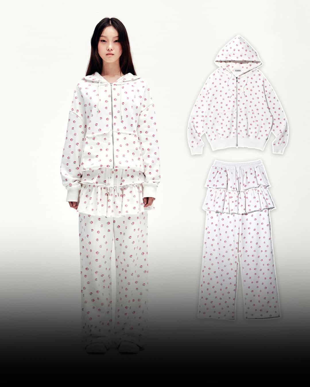 FLOWER PATTERN HOOD ZIP-UP WHITE KRW 129,000