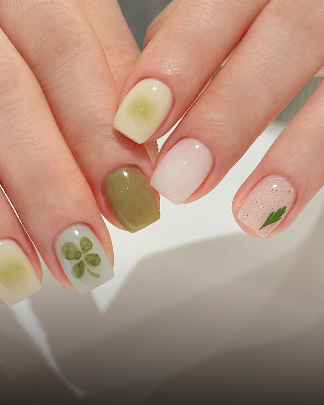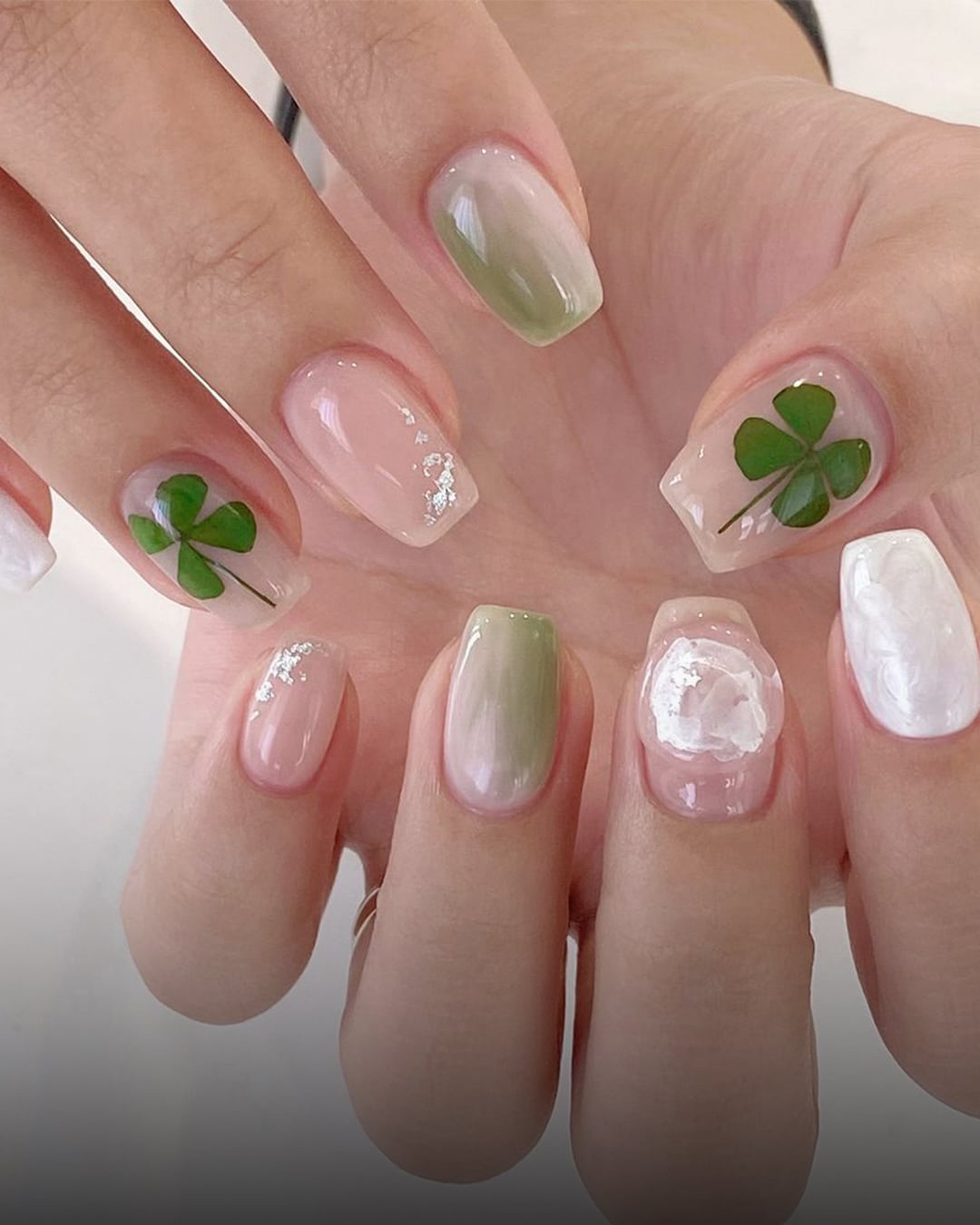 The four-leaf clover, a symbol of good luck, is not only charming but also has a calming effect—its green hue is said to soothe the brain, relaxing tired eyes and body. We’ve gathered some fresh and vibrant four-leaf clover nail designs that are perfect for the lush summer season!