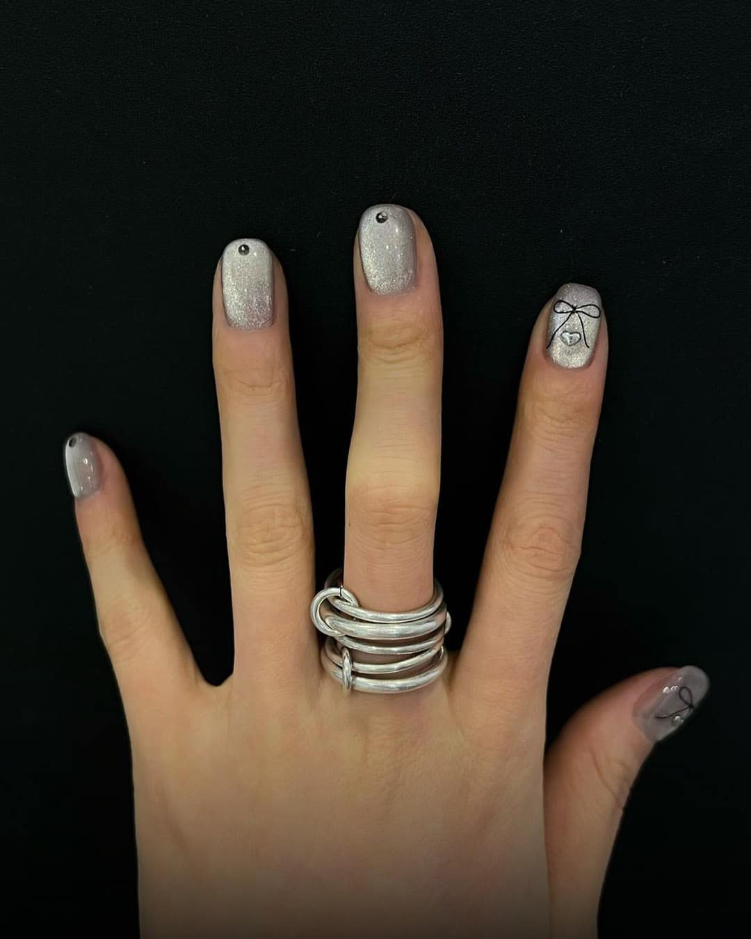 The silver color trend extends not only to fashion but also to nail art. Silver nails offer a unique and sophisticated mood without being as flashy as glitter. Thanks to them, you can create a glamorous look without needing to wear accessories like rings or bracelets.