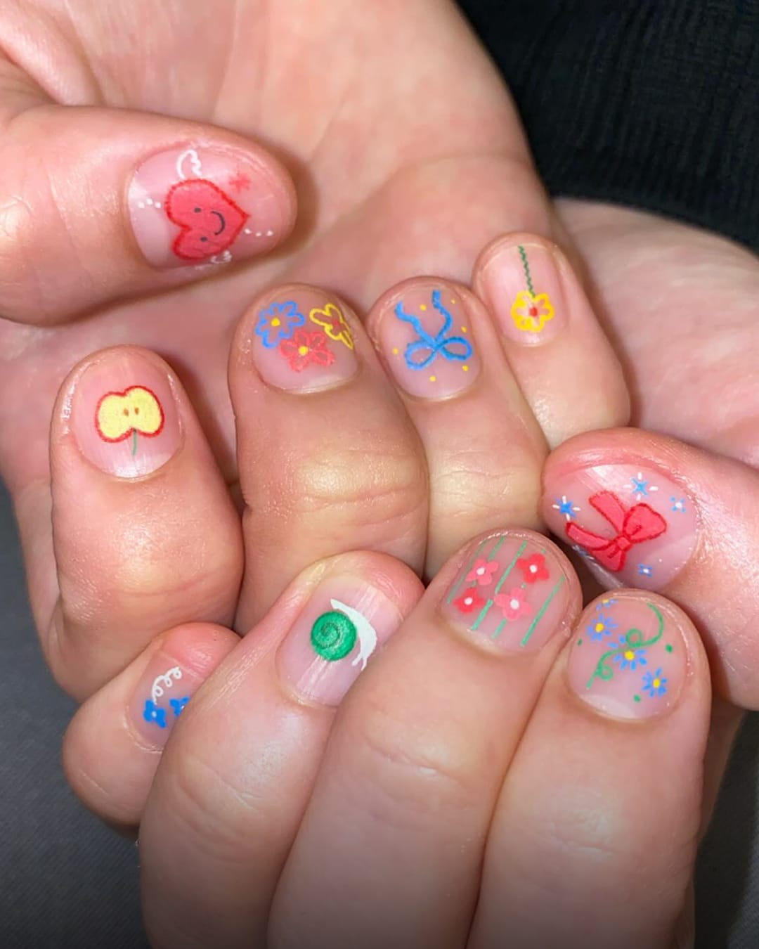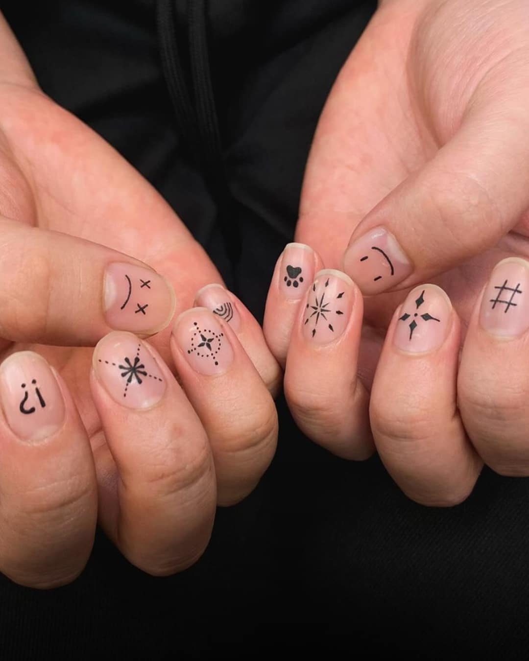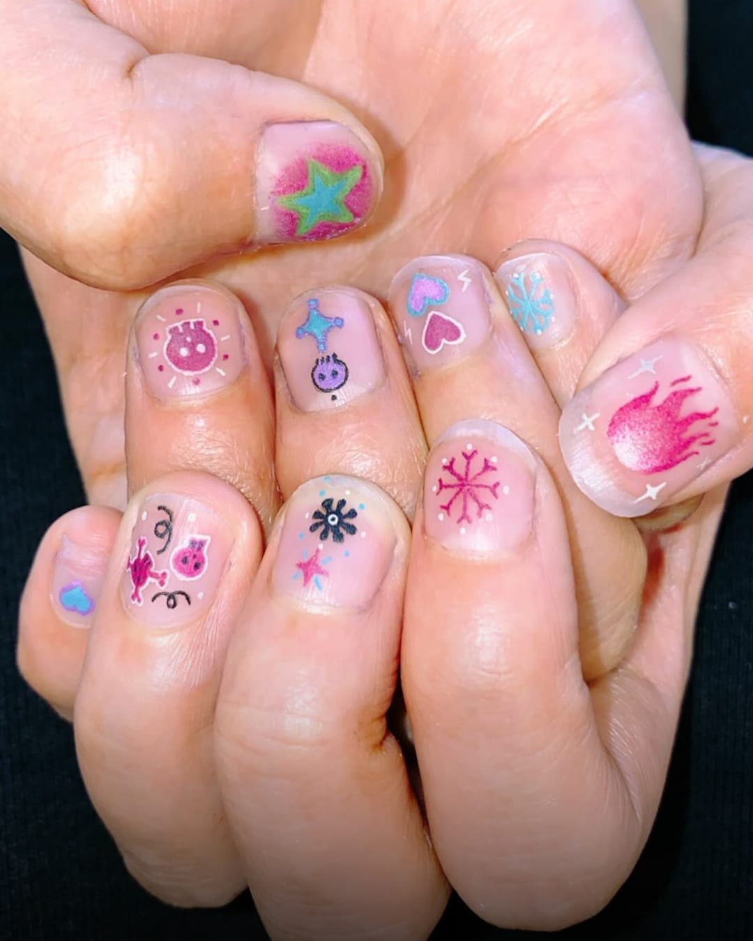 From minimalistic designs using dots, lines, and shapes to colorful, kitschy styles, detailed gradients, characters, and lettering done with fine needles—when gel nails feel too restrictive, add a touch of flair with a nail tattoo.