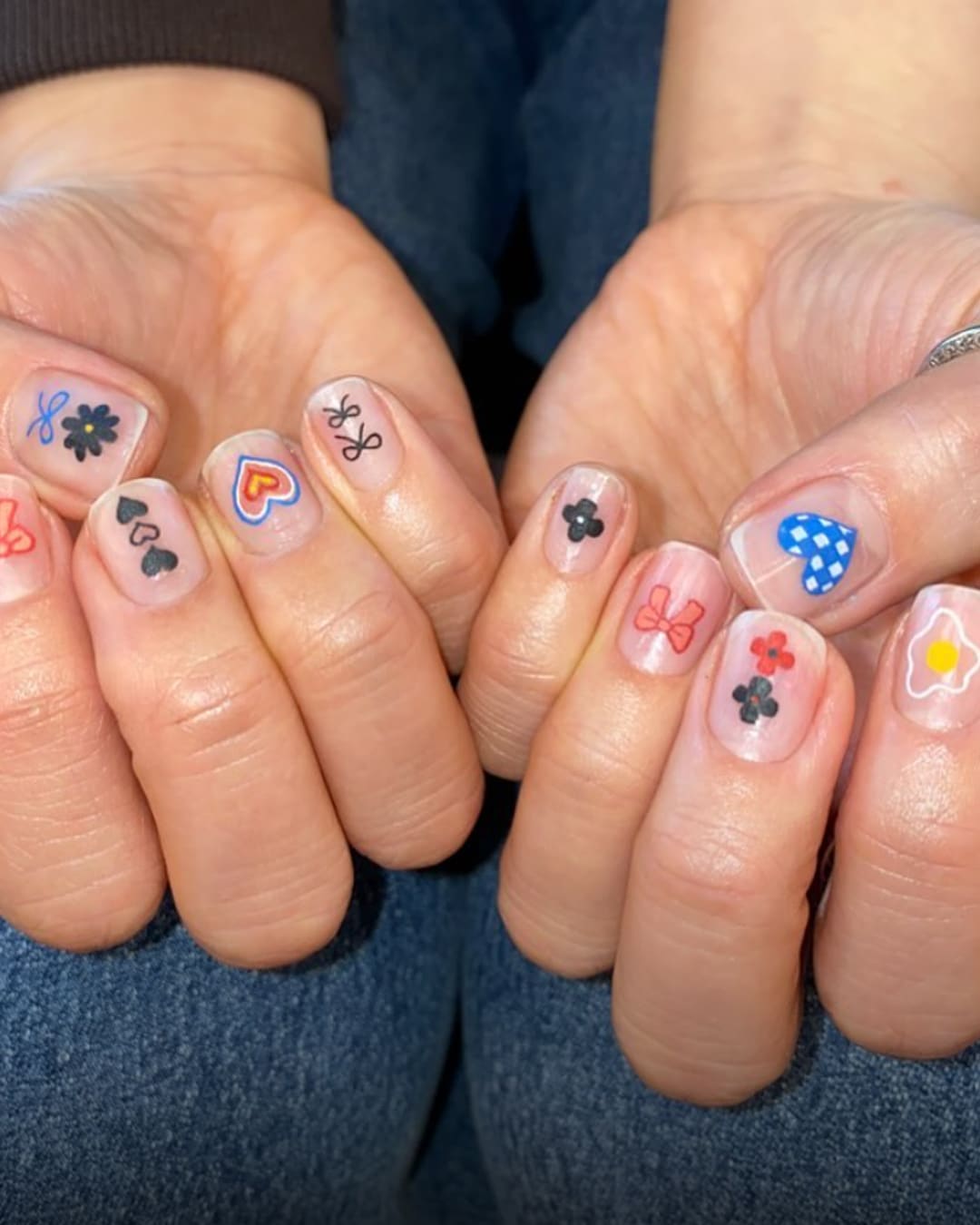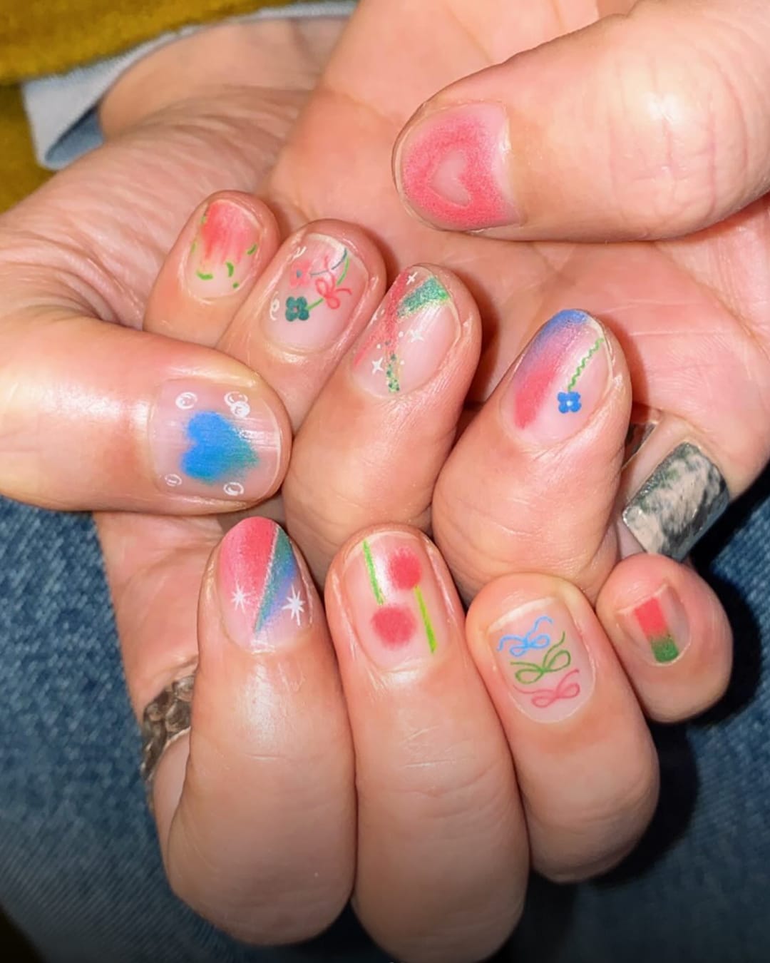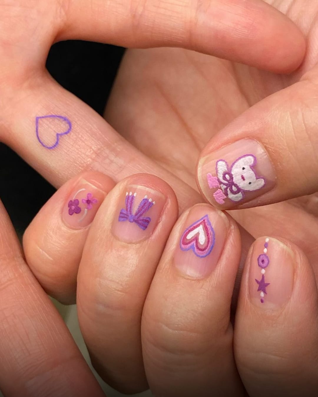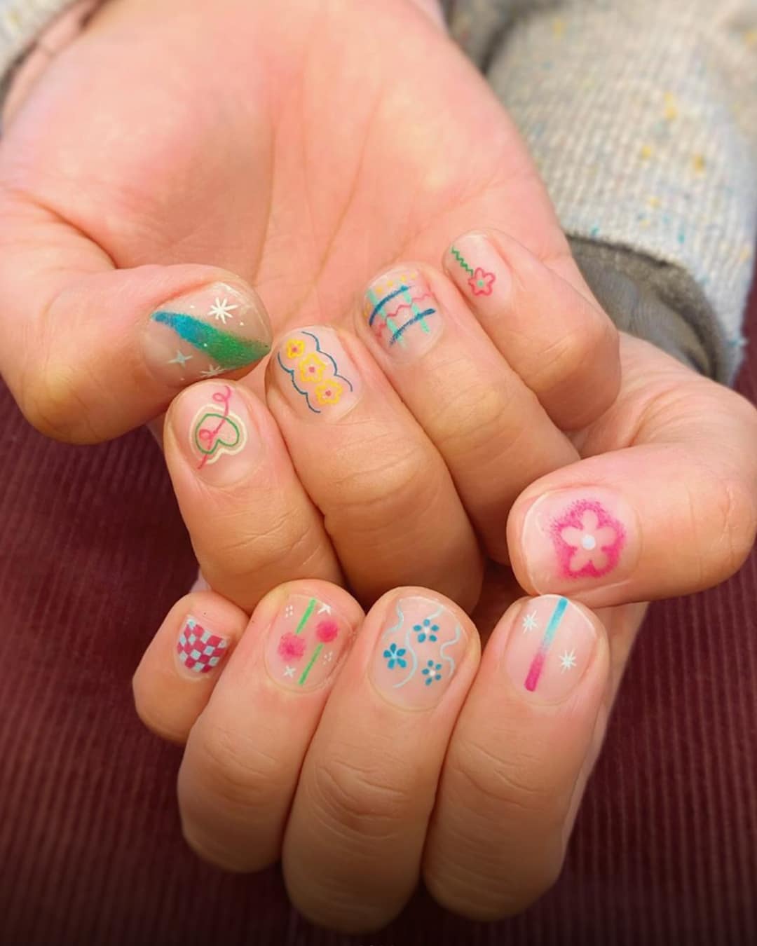 From minimalistic designs using dots, lines, and shapes to colorful, kitschy styles, detailed gradients, characters, and lettering done with fine needles—when gel nails feel too restrictive, add a touch of flair with a nail tattoo.