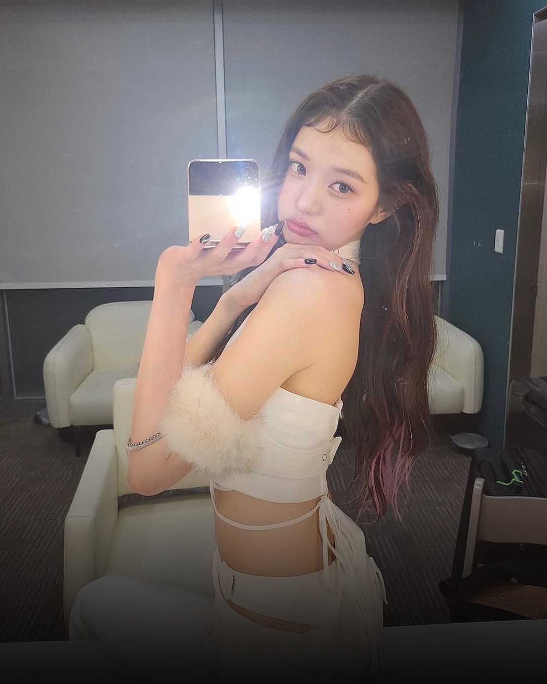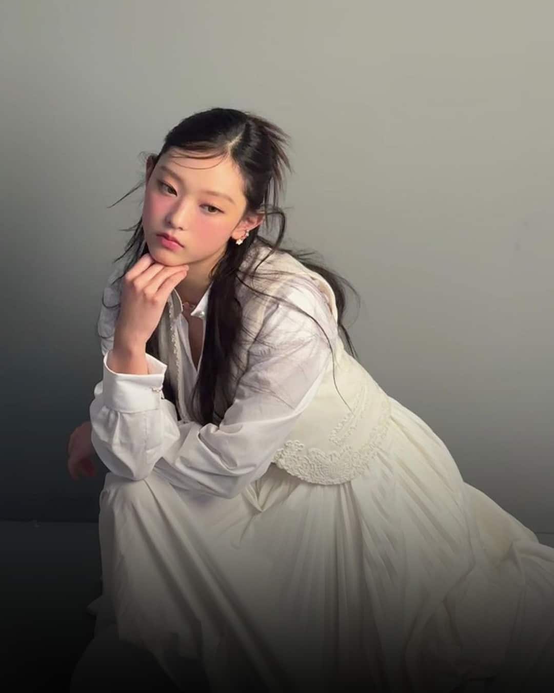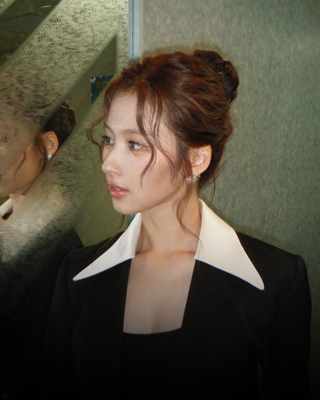 A style that’s making a comeback with the Y2K trend, where the bangs are styled to stick to the side, creating a curve that resembles a perilla leaf.