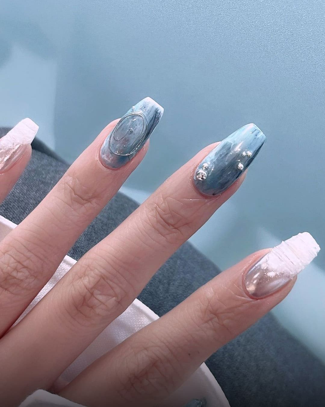 Resembling the refreshing sea with just a glance, blue is a color that can be applied not only in fashion and makeup but also in nail art. Thanks to its vibrant and lively nature, with no need for extra accessories, you can complete a stylish look effortlessly ✨