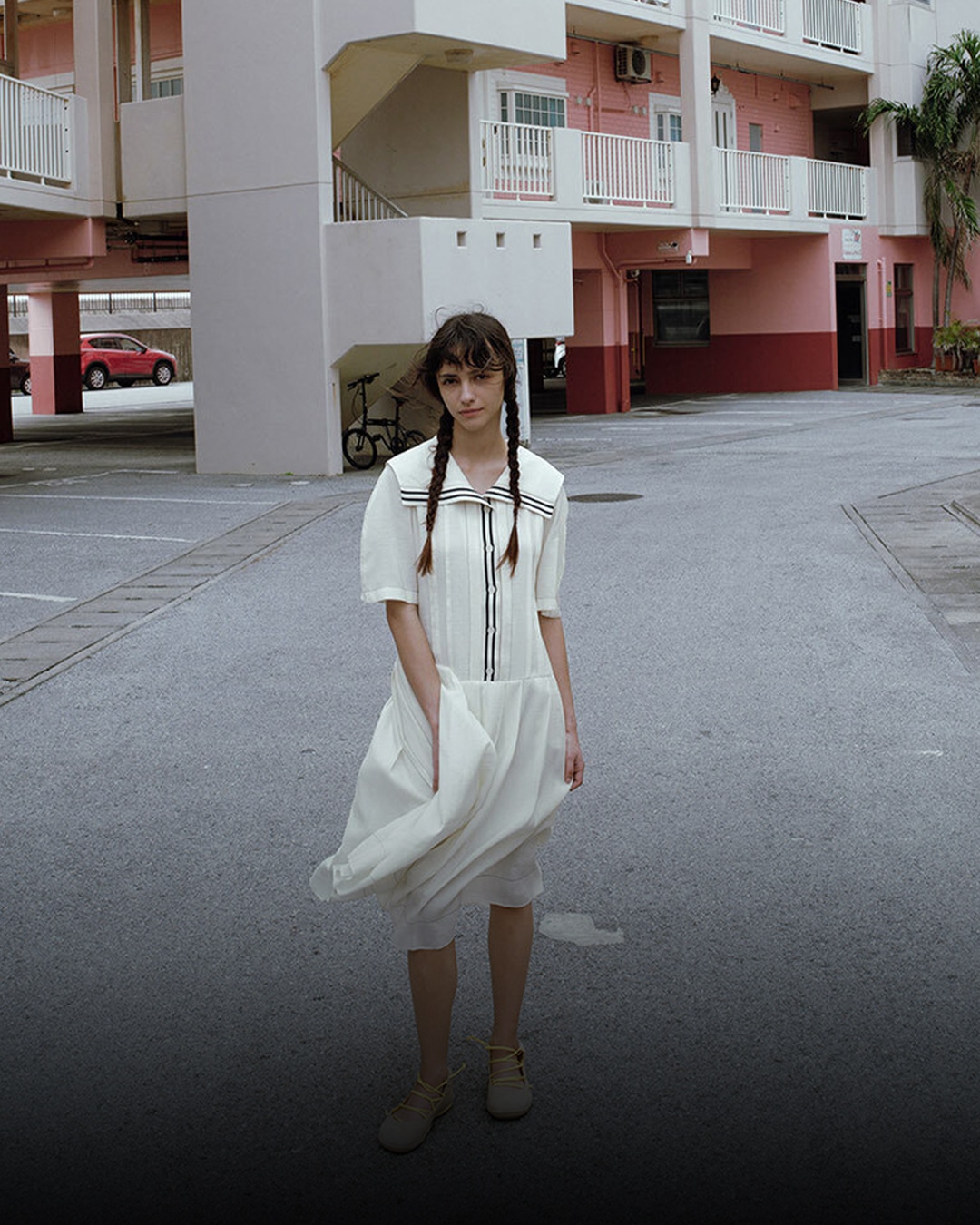 Marine Stripe Pleated Dress Cream KRW 219,000