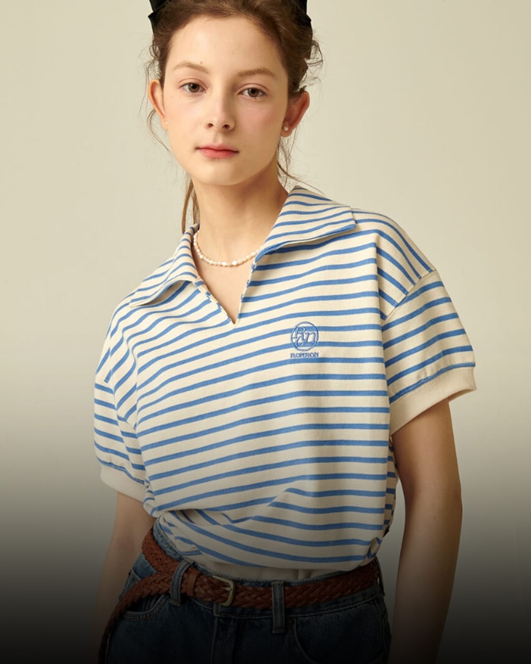 STRIPE COLLAR HALF T-SHIRT BLUE KRW 61,000