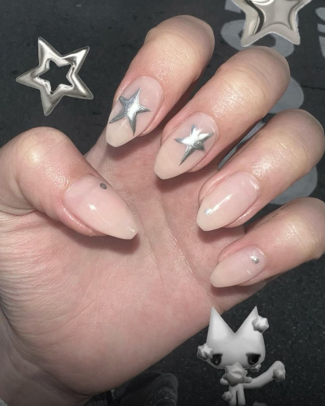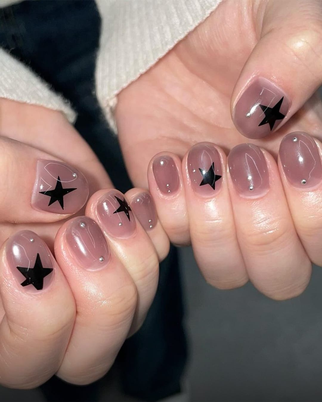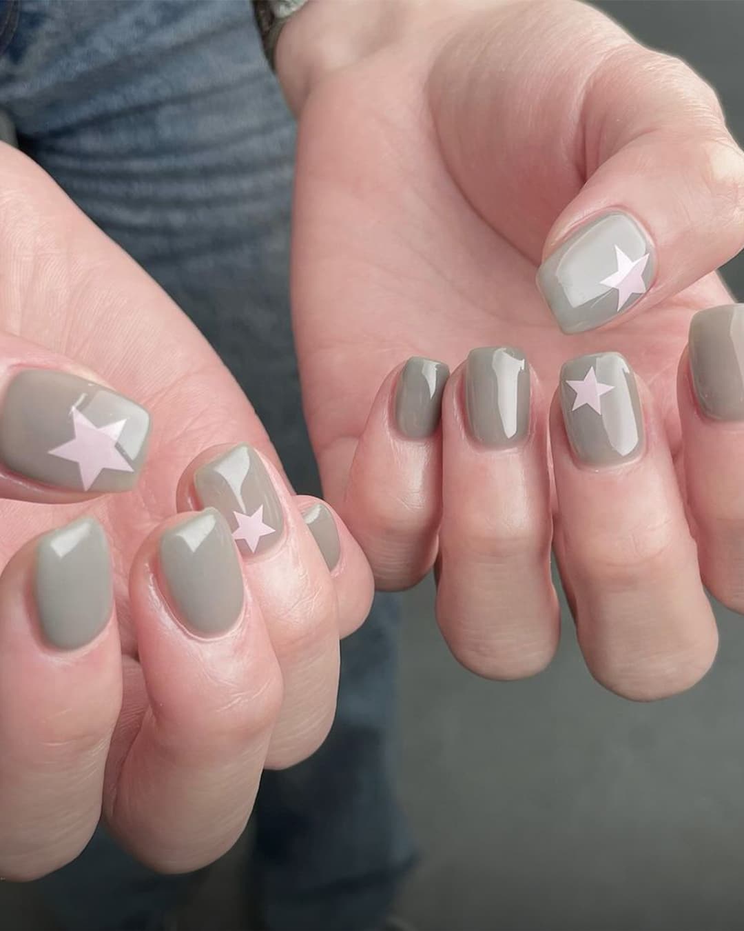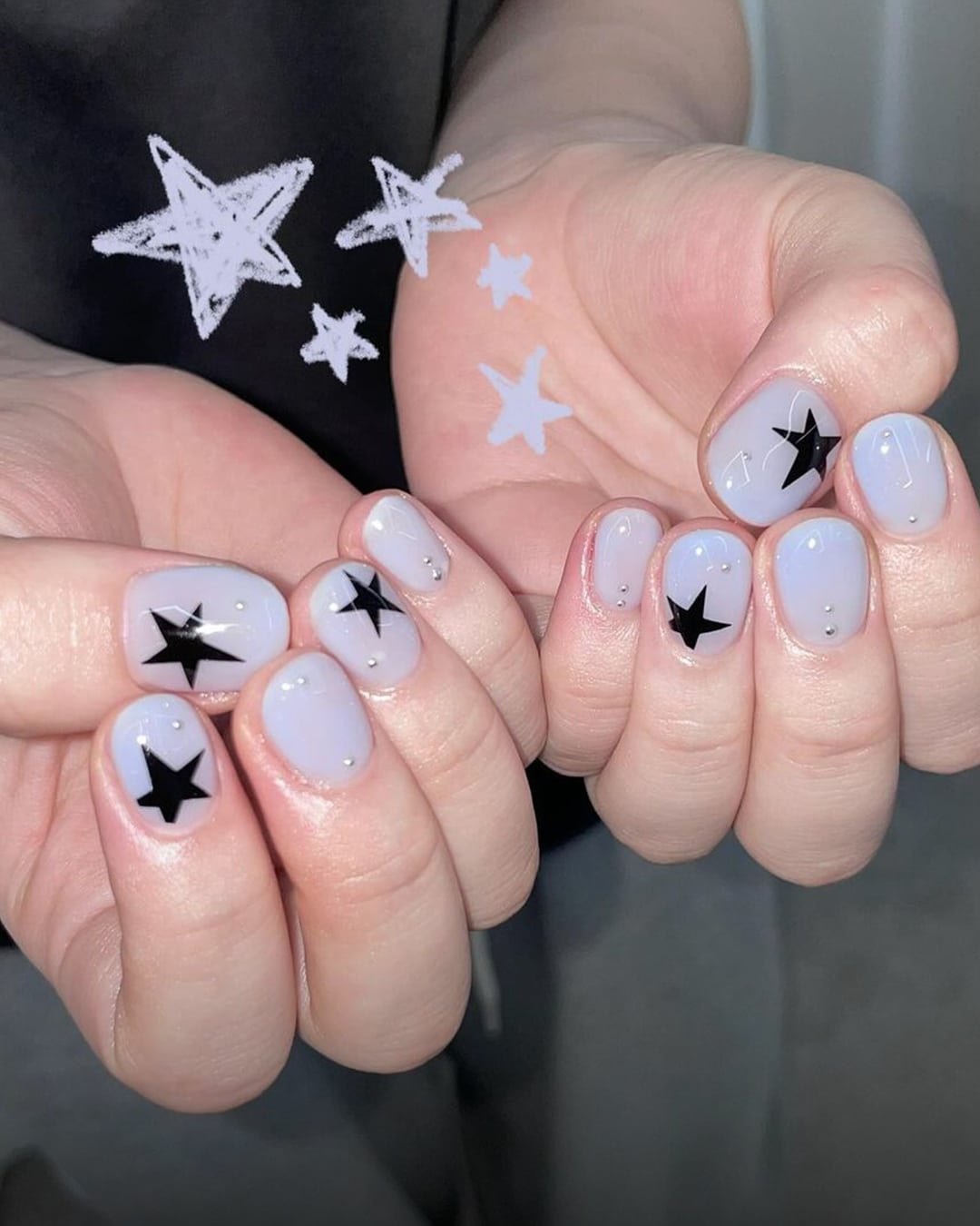 The classic design featuring five sharp points and a glittering shine, stars are a universal symbol✨. Though star shapes have been used in various contexts worldwide, they can sometimes come off as tacky, which is why they haven’t been a popular choice in nail art. However, when used subtly, they can add a cute and funky touch to your nails.