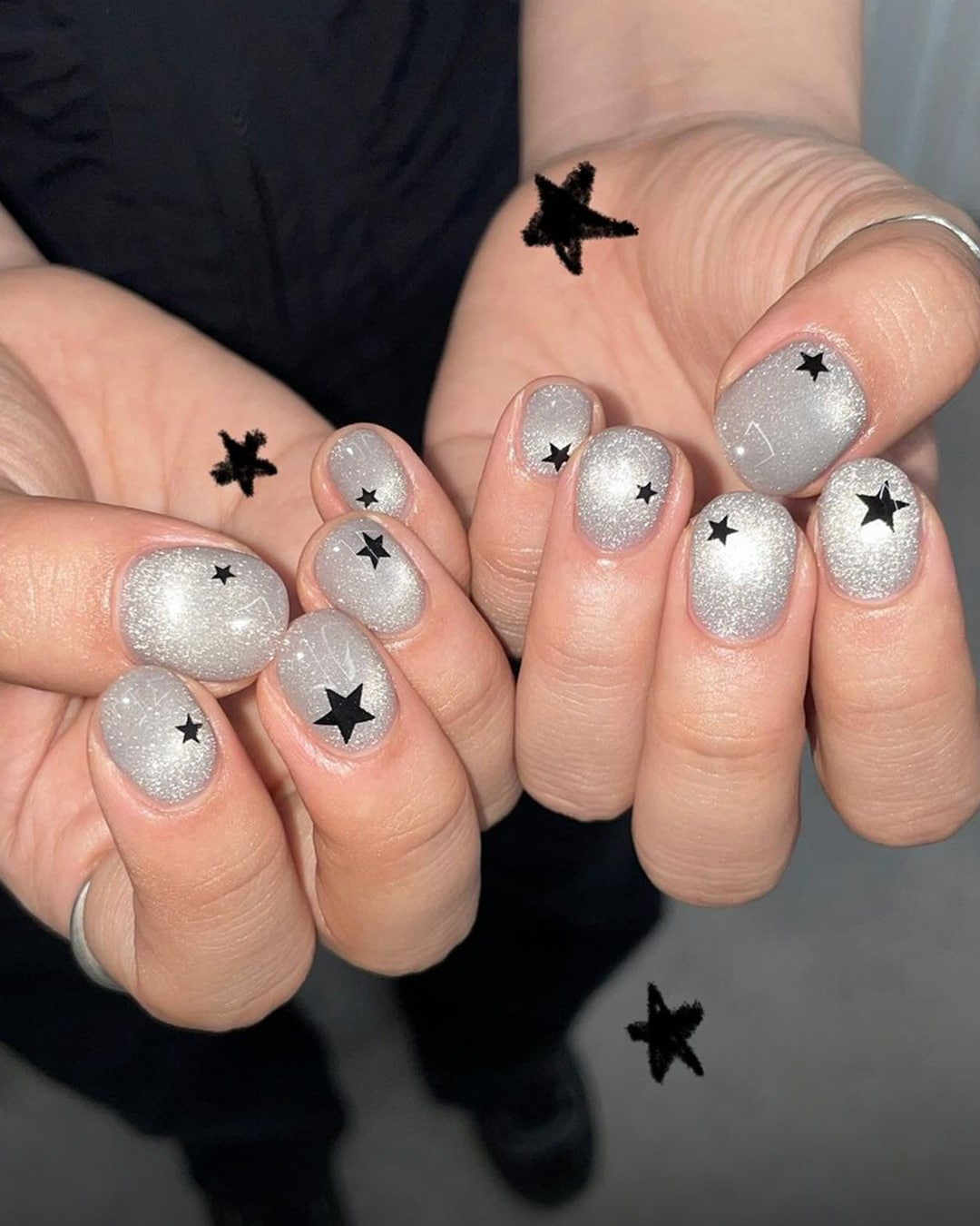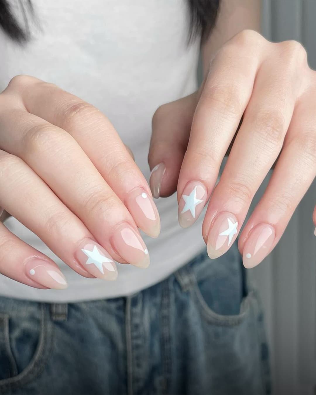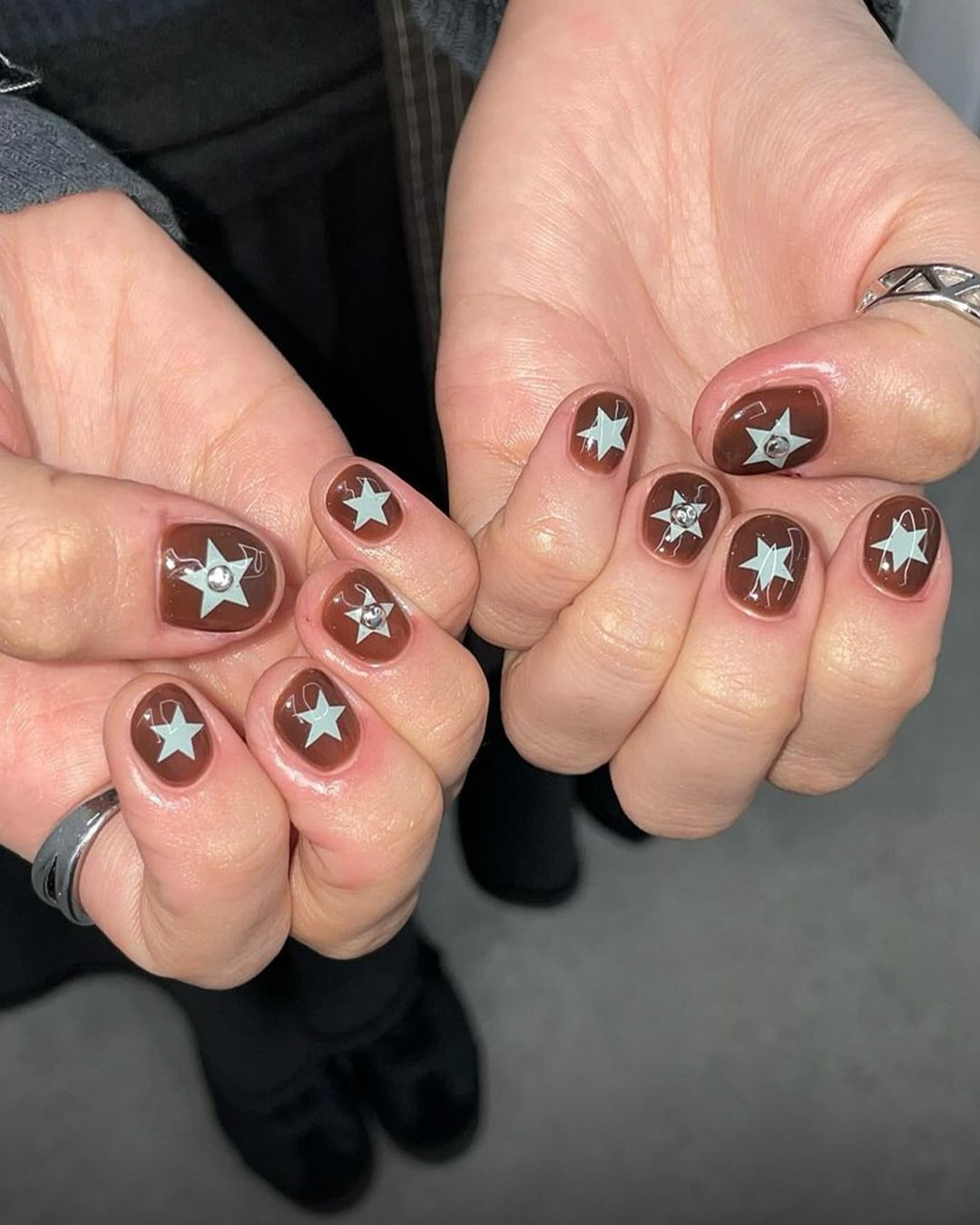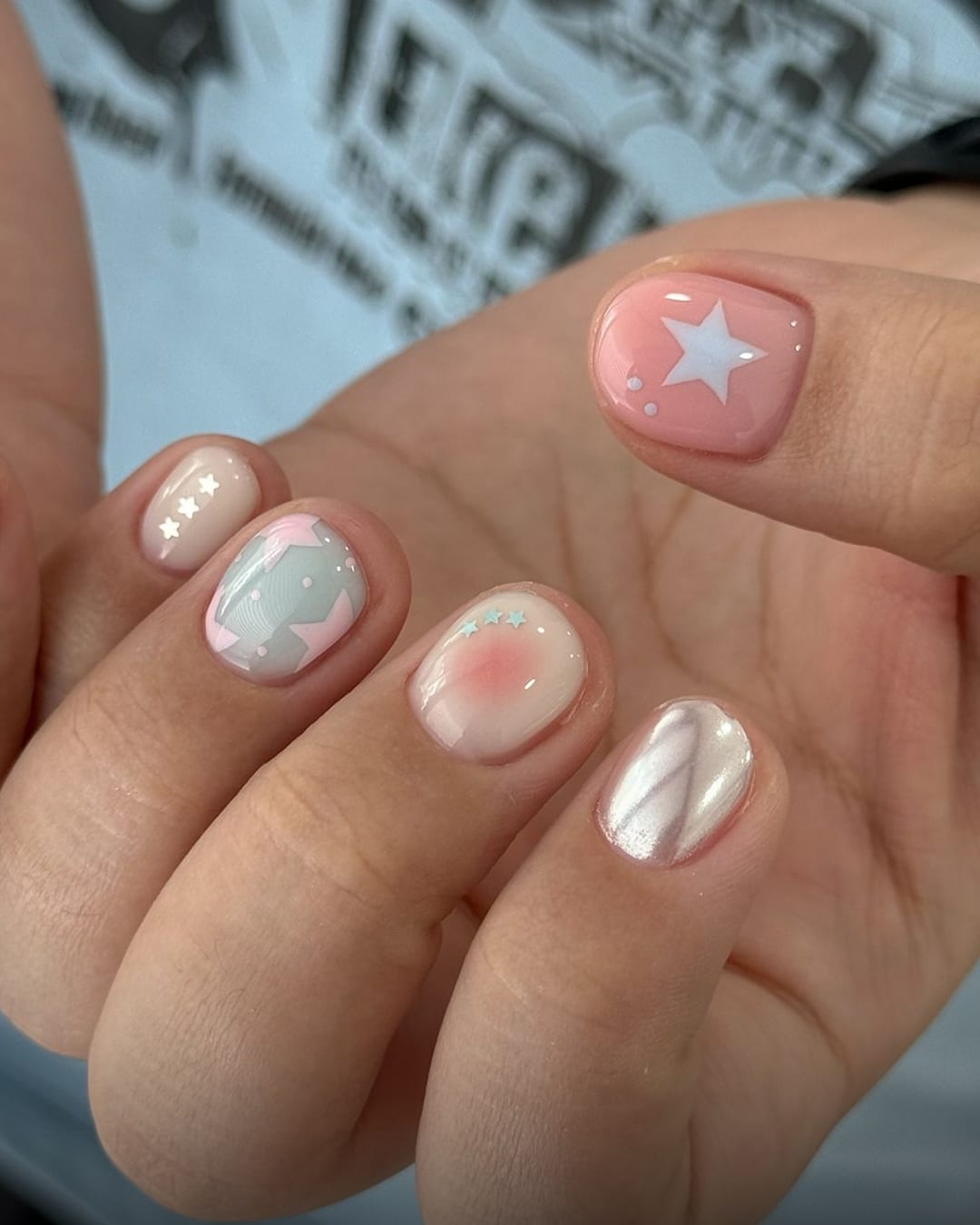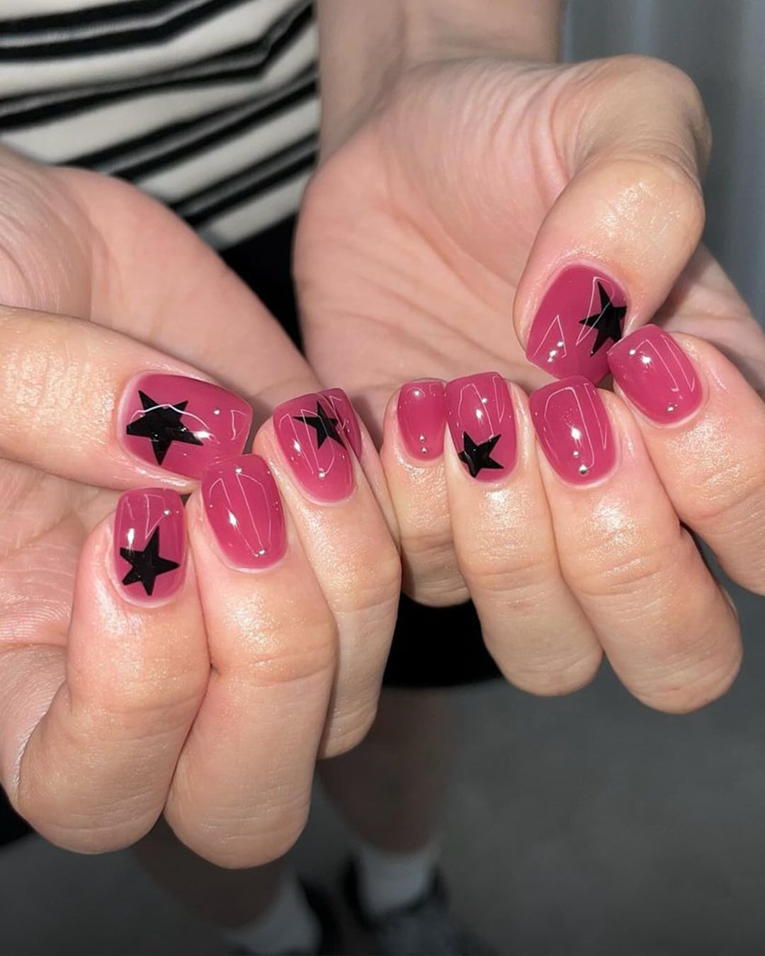 The classic design featuring five sharp points and a glittering shine, stars are a universal symbol✨. Though star shapes have been used in various contexts worldwide, they can sometimes come off as tacky, which is why they haven’t been a popular choice in nail art. However, when used subtly, they can add a cute and funky touch to your nails.