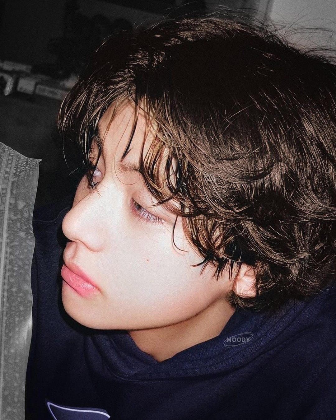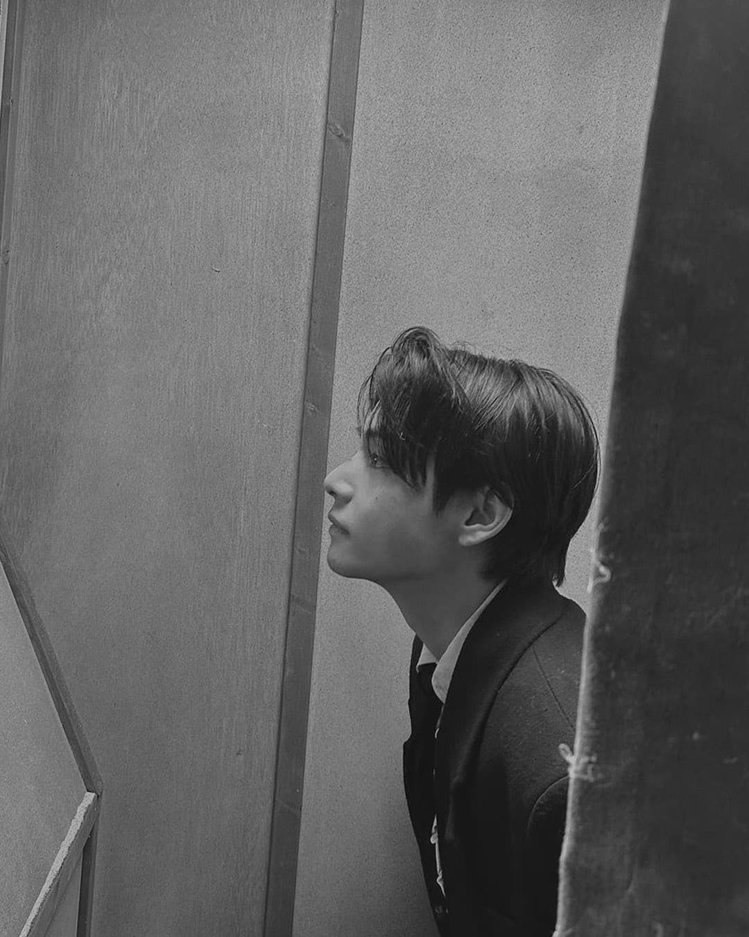 ▫️ Side-swept hair falling along the facial contour helps to cover the forehead and jawline. Adding wispy bangs can simultaneously create a innocent and boyish atmosphere.