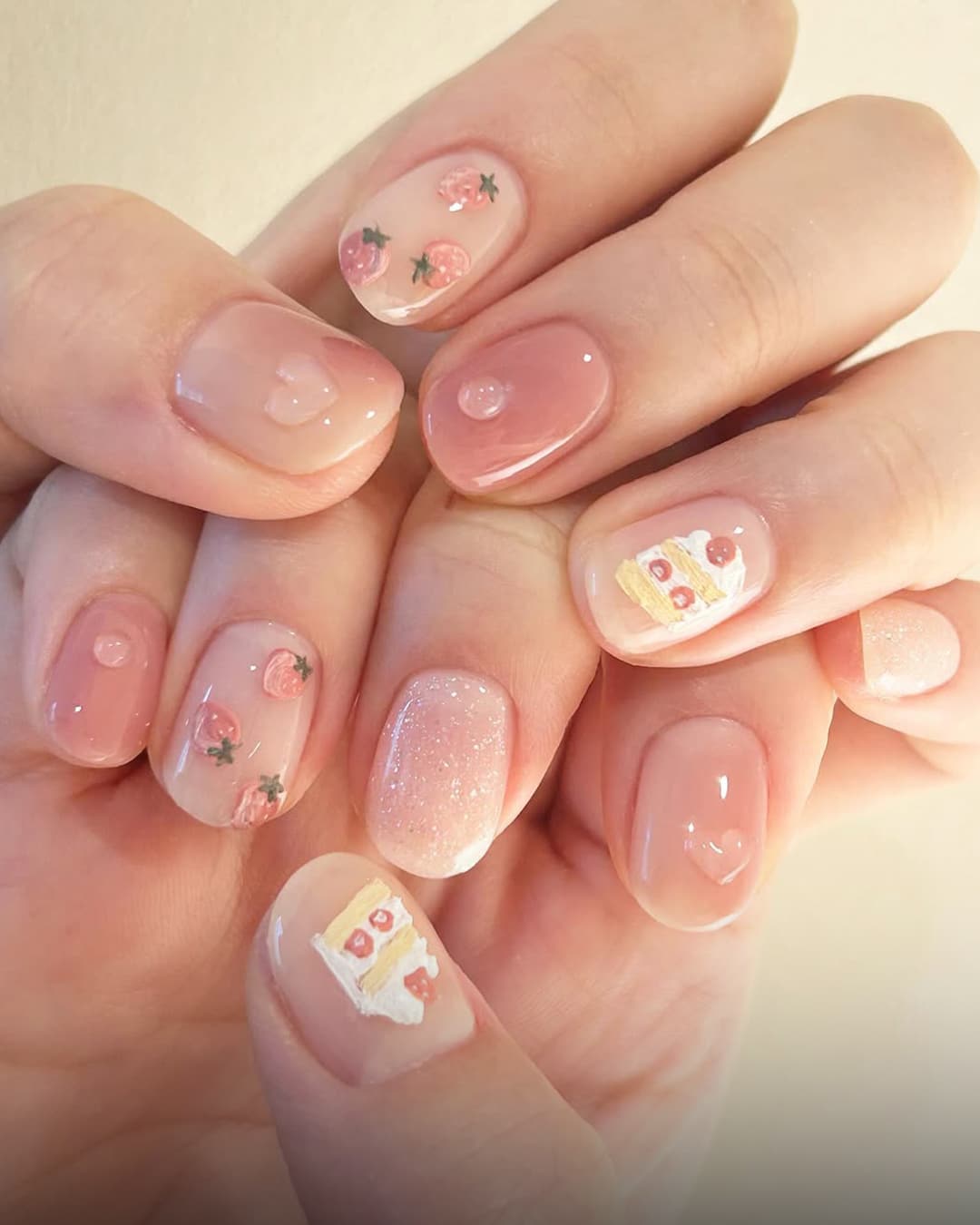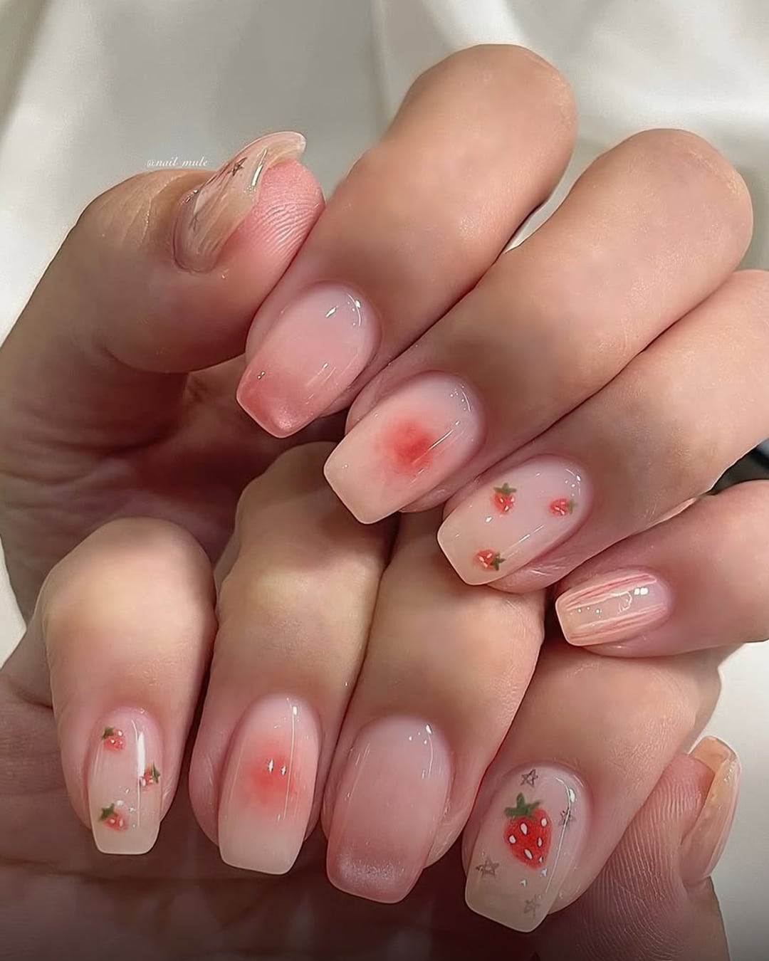 Celebrate the season of strawberries with nail designs inspired by their fresh red hue and adorable heart shape! From glossy finishes that mimic the juicy, jelly-like texture of fresh strawberries to detailed accents like strawberry seeds for a cute vibe, these nail art ideas are perfect for adding charm to your everyday look. You can even incorporate green accents inspired by strawberry leaves for an extra pop of freshness!