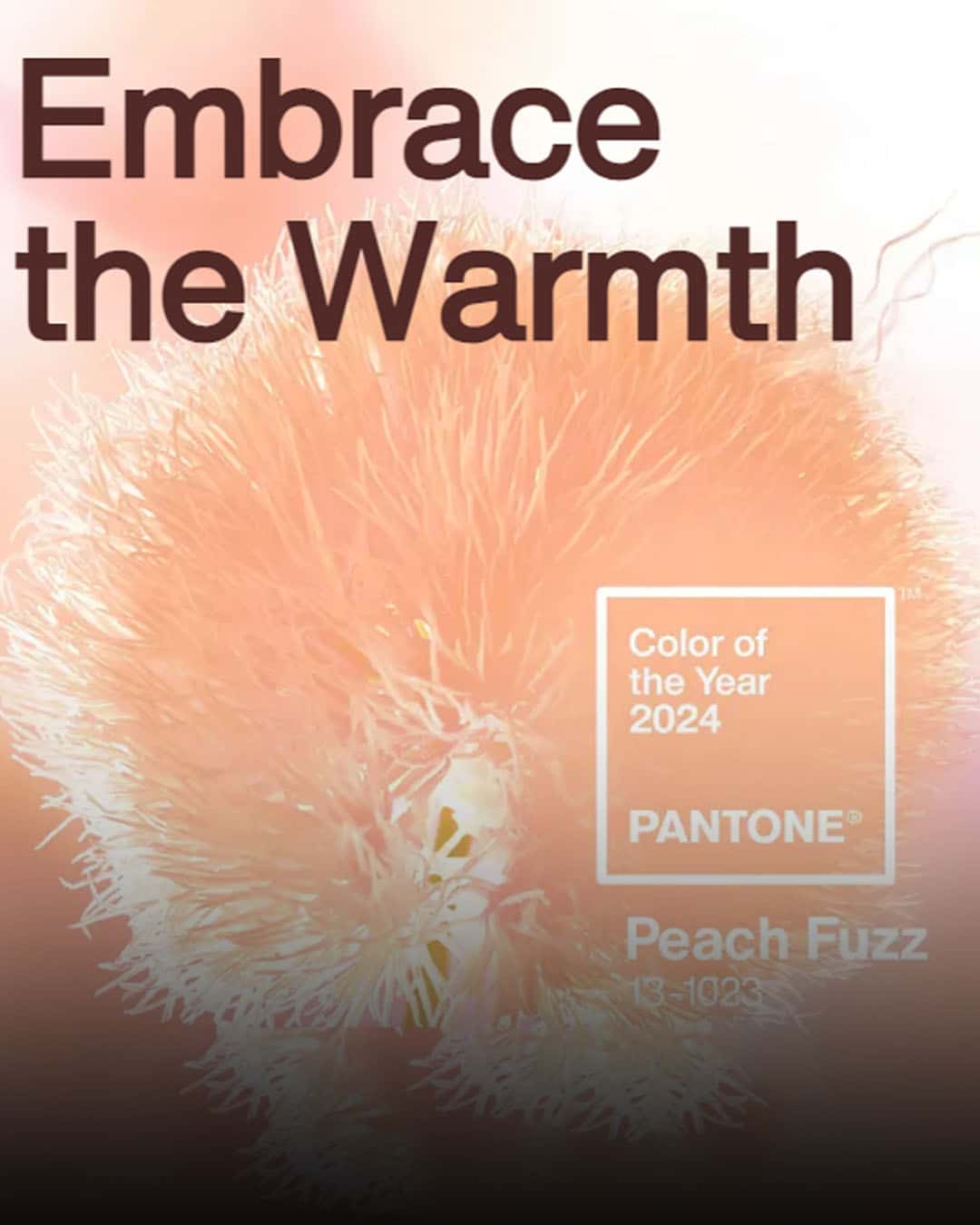 Due to its subtle yet warm peachy hue, nestled between pink and orange, it is anticipated that Peach Fuzz (PANTONE 13-1023) will have high versatility in everyday life. 🍑