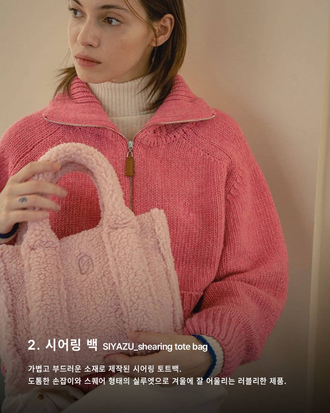 A lightweight tote bag made with soft materials. With a thick handle and a square silhouette, it exudes a lovely winter mood.