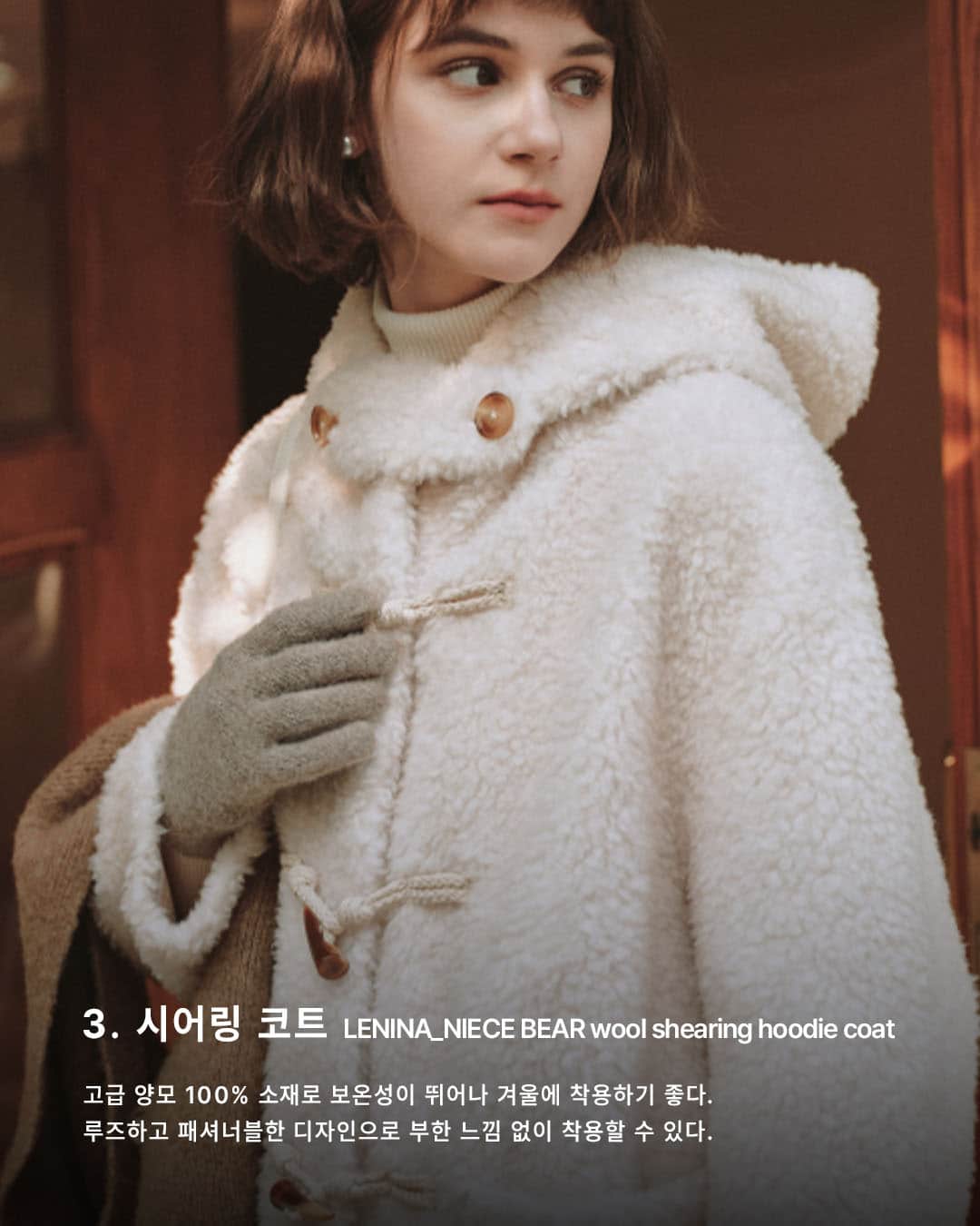3️⃣ @lenina_seoul NIECE BEAR wool shearing hoodie coat