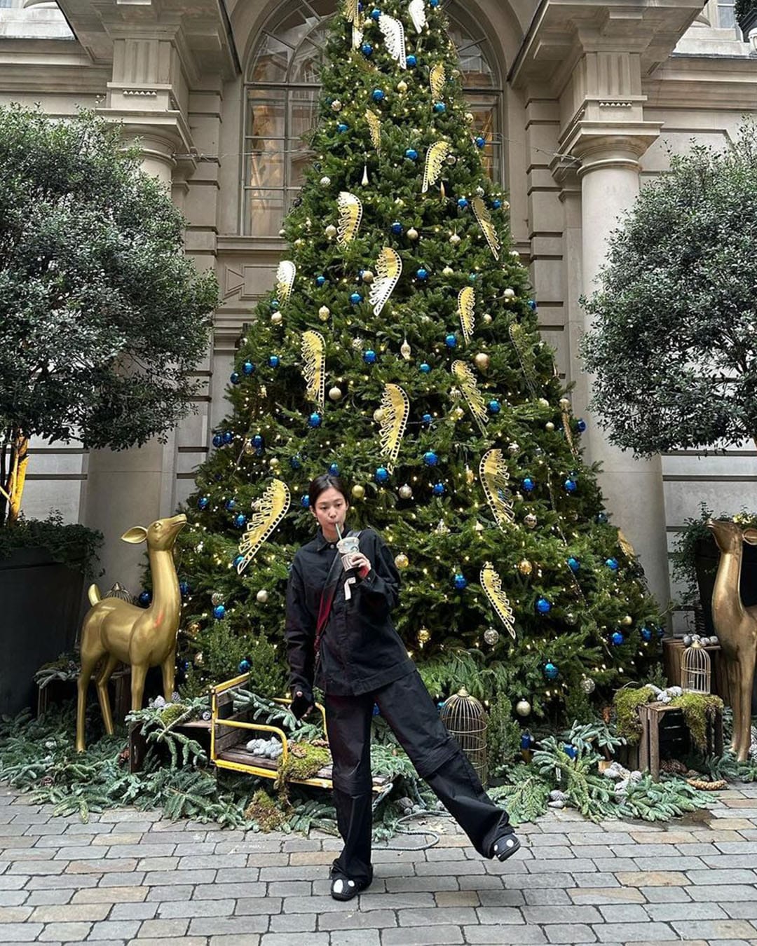 Blackpink member Jennie released photos from her trip to London. From outerwear to bags and accessories, the look was completed in just one black color.