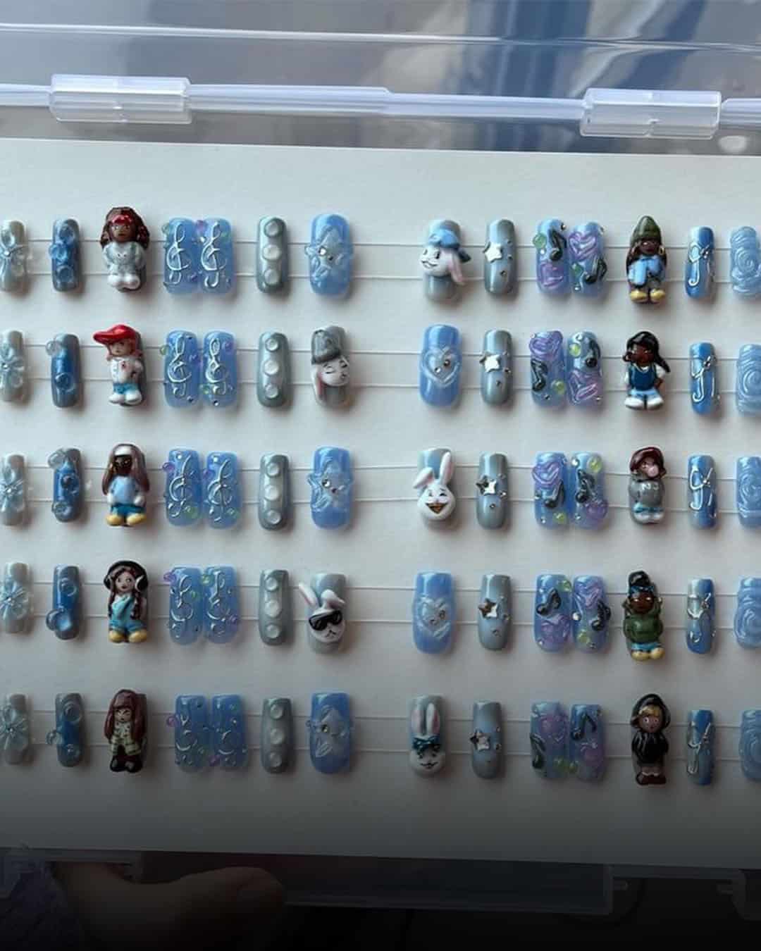 The artist responsible for the nails in NewJeans’ Japanese debut album ‘Supernatural’ and their music video for the song ‘Right Now’ is Kira Kira Nails, who is based in London, UK. They gained attention for showcasing designs featuring figures that characterize each member.