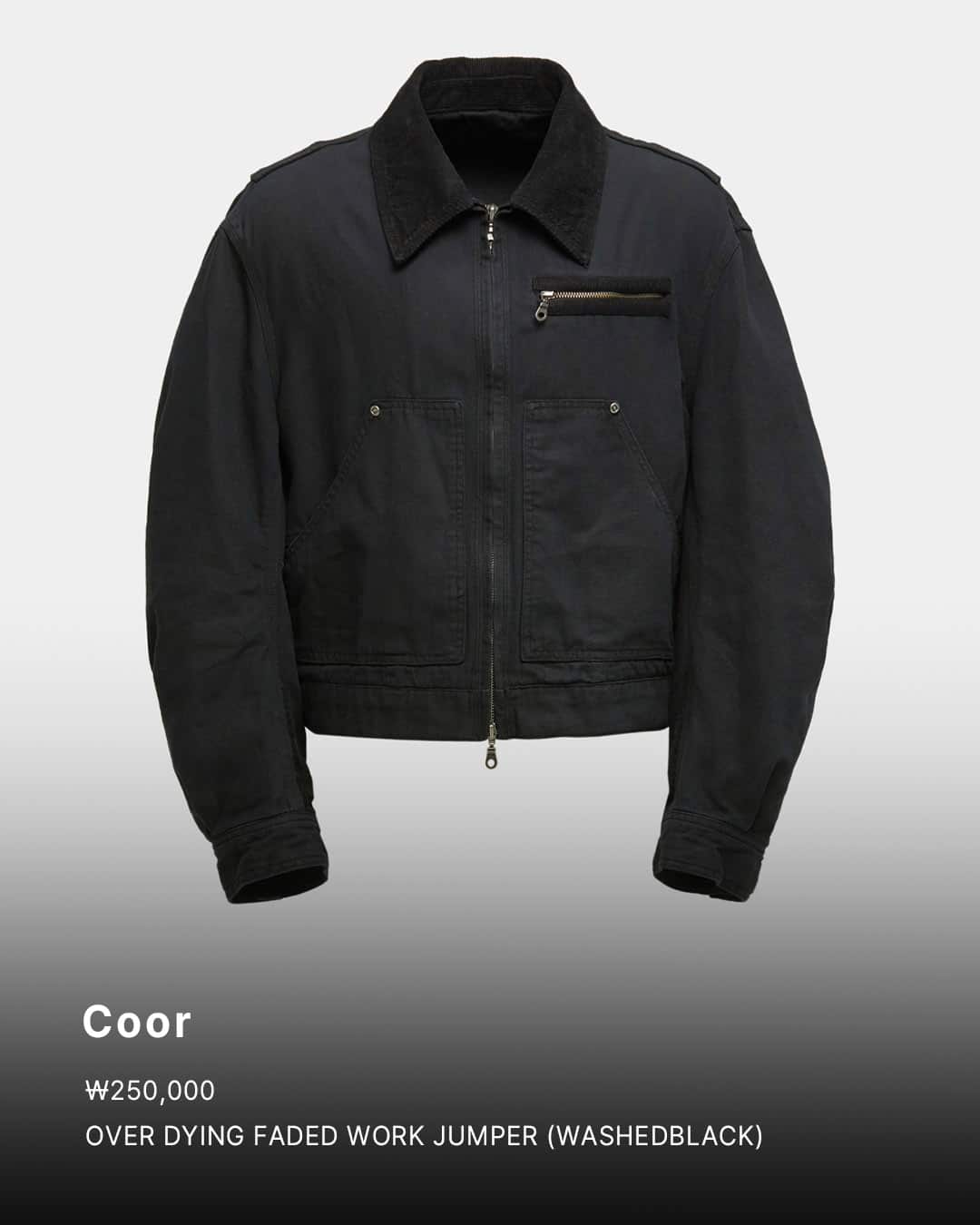 1️⃣ @coor_official OVER DYING FADED WORK JUMPER (WASHEDBLACK) ₩250,000