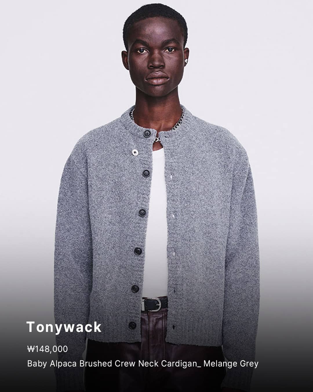 3️⃣ @tonywack_official Baby Alpaca Brushed Crew Neck Cardigan_ Melange Grey ₩148,000