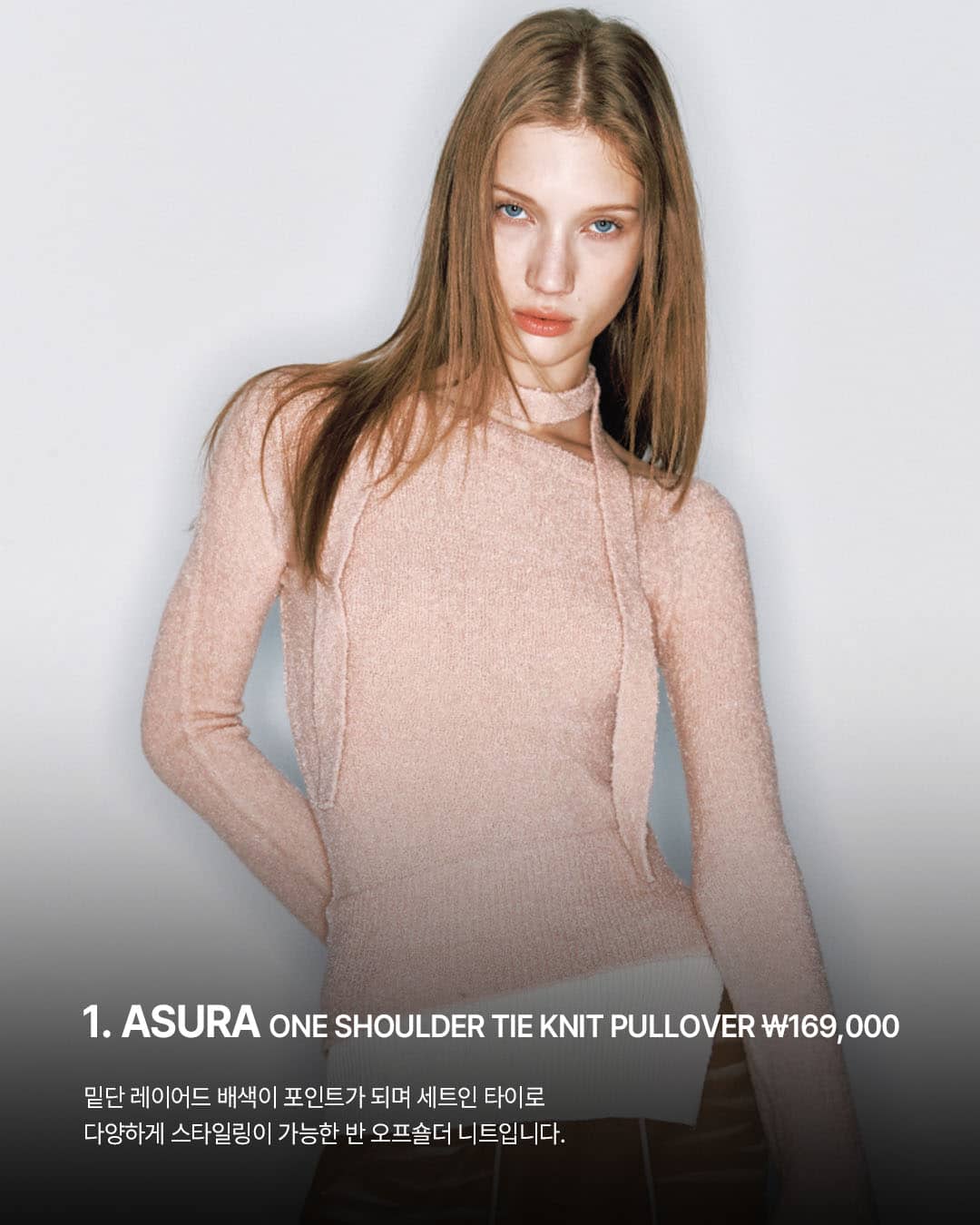 1️⃣ @asuraofficial_ ONE SHOULDER TIE KNIT PULLOVER ₩169,000