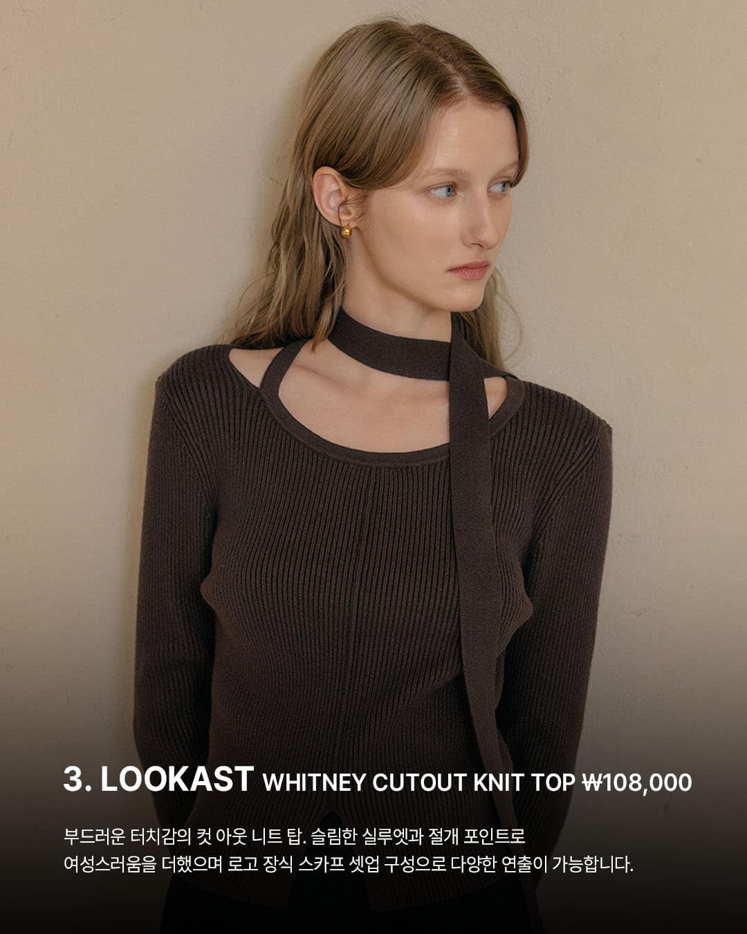 3️⃣ @lookast WHITNEY CUTOUT KNIT TOP ₩108,000