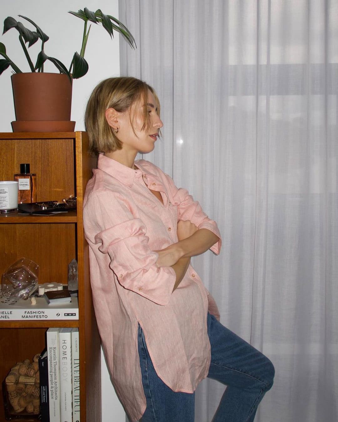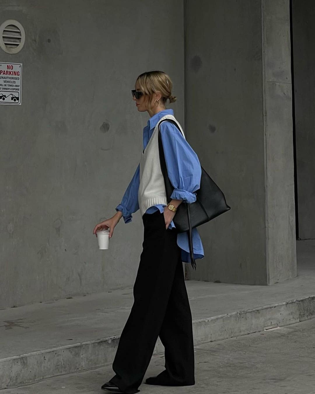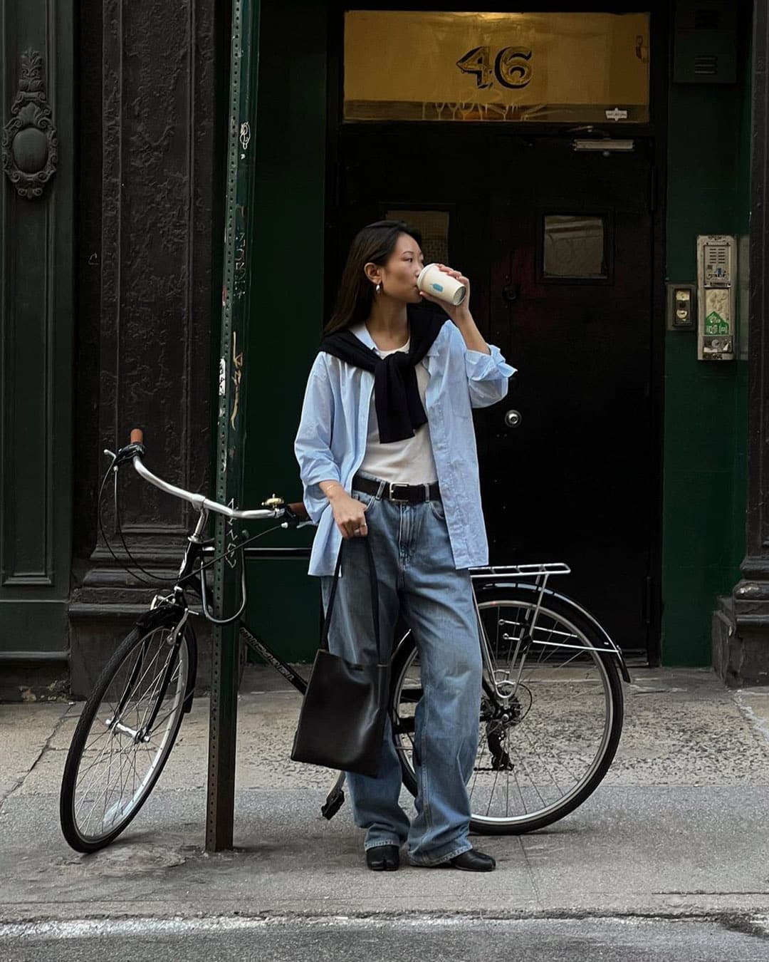 ▫️ Use an oversized shirt as a transitional outerwear piece.