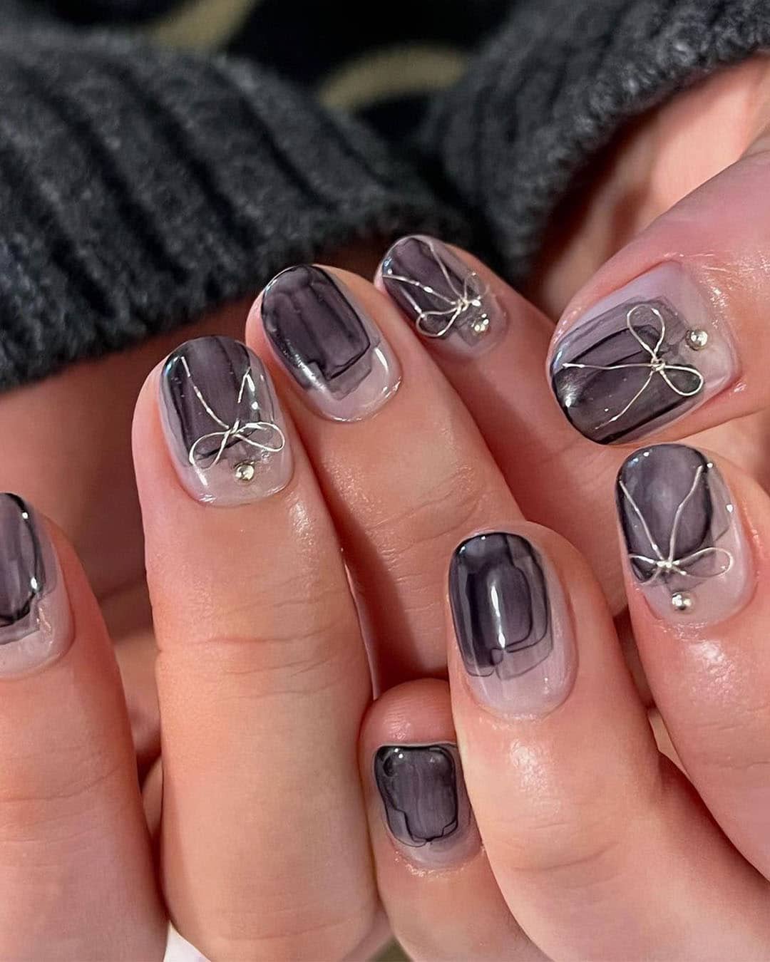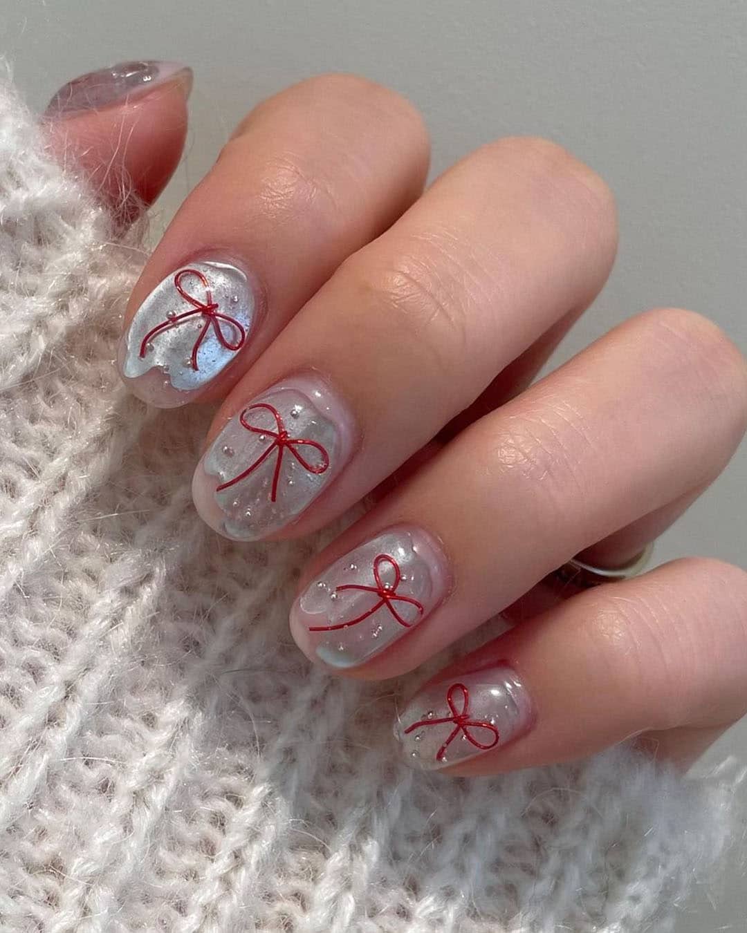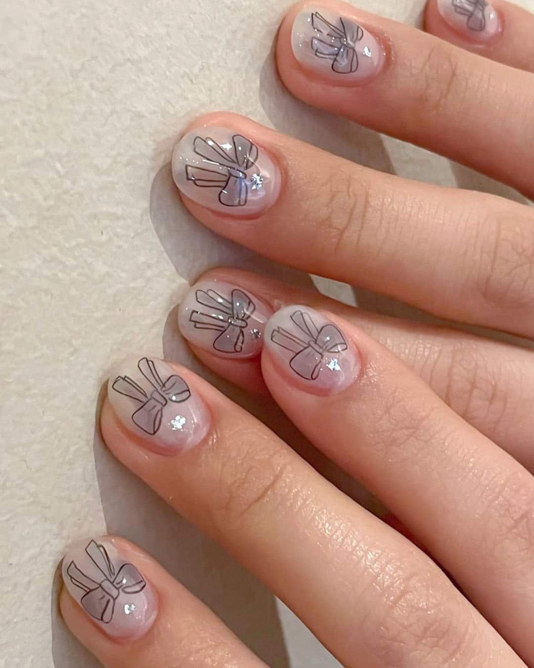 Introducing the hottest ribbon nail cyan right now. Let’s send off the year-end season with adorable ribbon nails!”