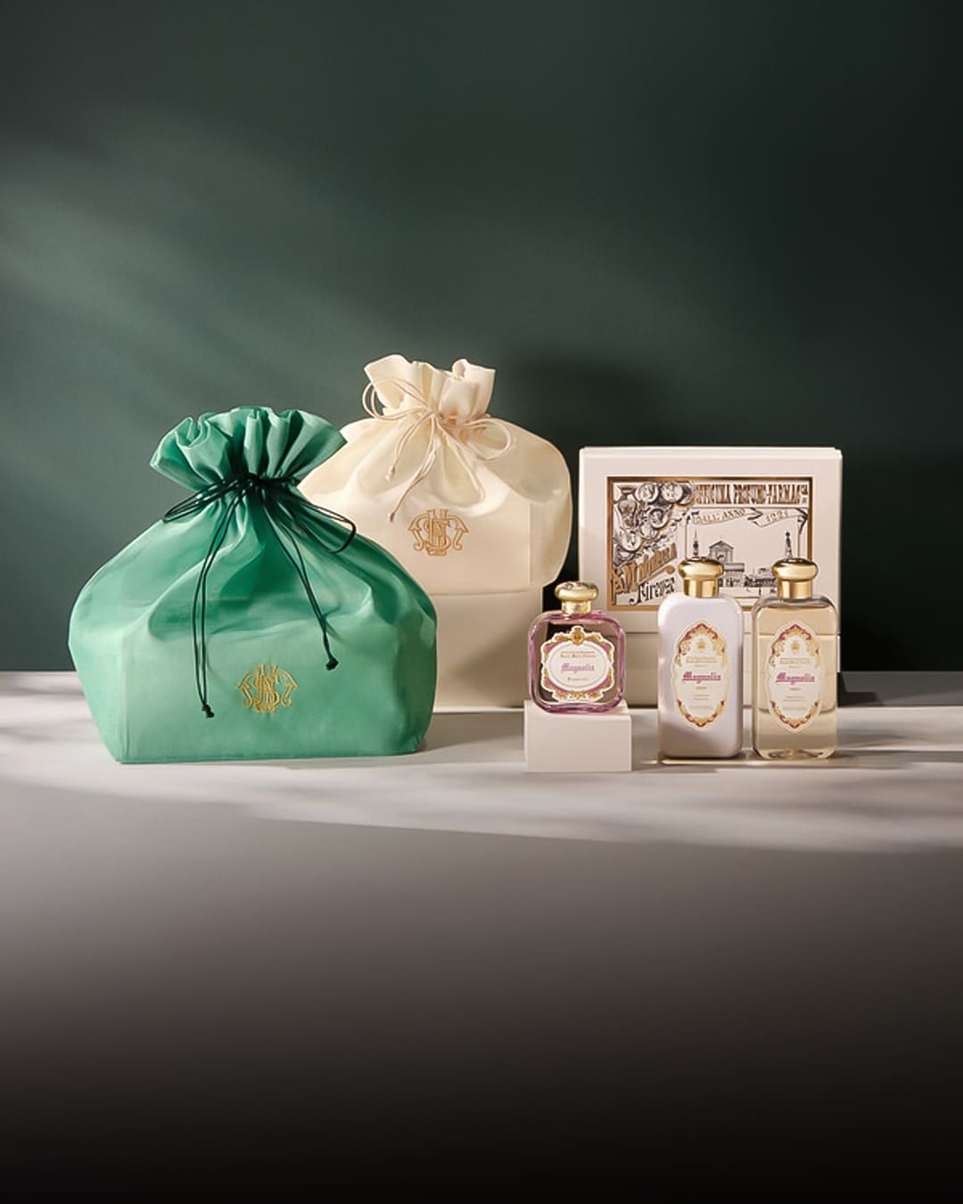 This body duo set includes a body wash (Bagnoschiuma) and body lotion (Crema Fluida). It comes wrapped in a traditional Korean-style bojagi.