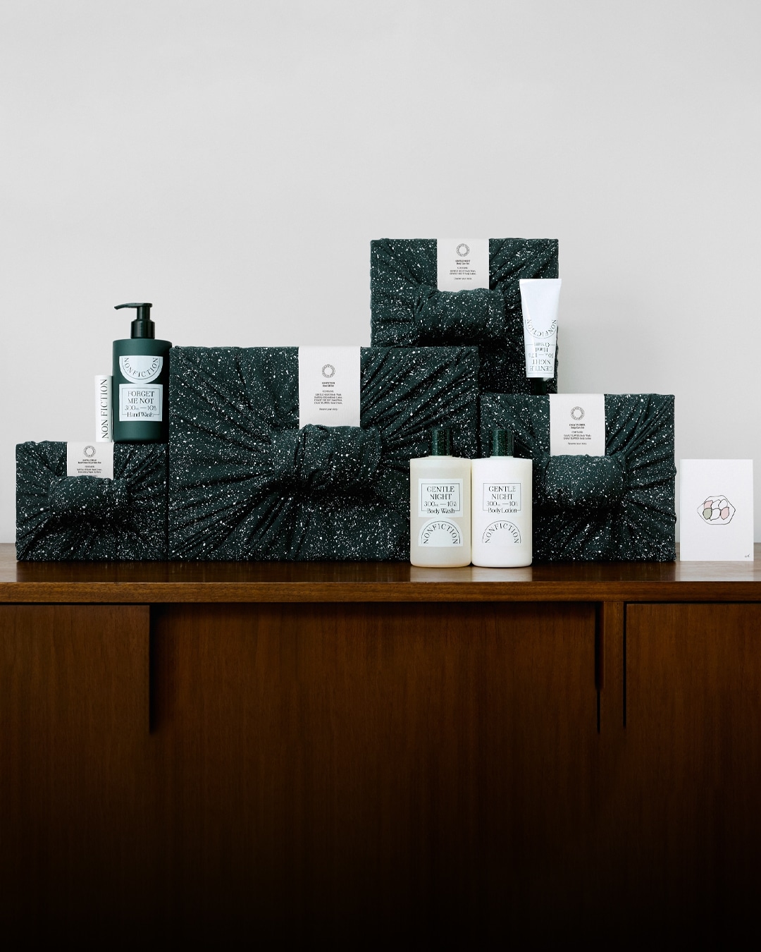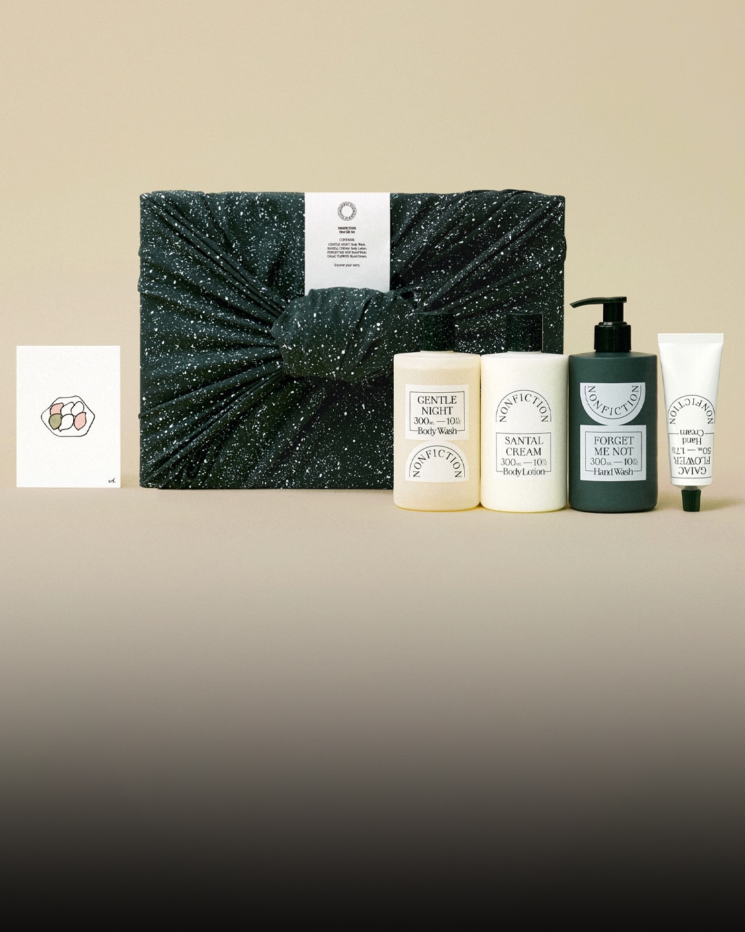 A set combining four best-selling scents with body and hand care products, wrapped in Nonfiction’s signature speckled bojagi to convey prosperity and good fortune.