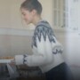 A knitwear crafted from a yarn blend of wool and alpaca, showcasing a soft and fluffy texture that enhances a warm and charming atmosphere.