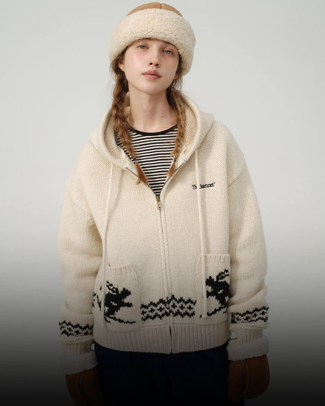 1️⃣ @thebarnnet Mono Ski Zip-Up Knit Hoodie 145,000