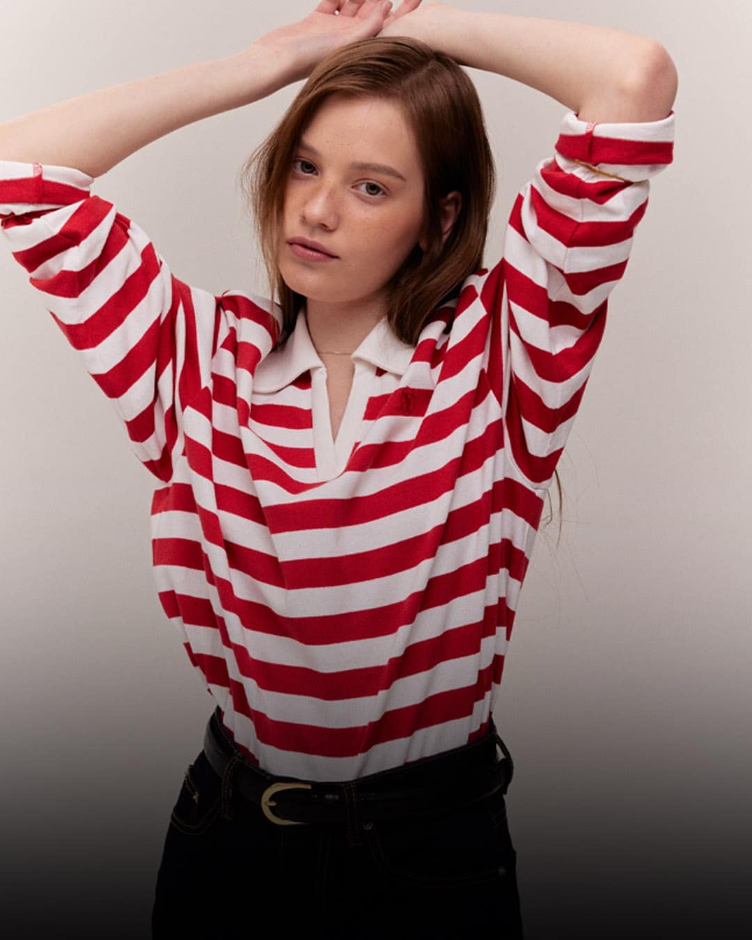 3️⃣ @margesherwood_official MARGESHERWOOD CROP STRIPE POLO T-SHIRT ₩119,000