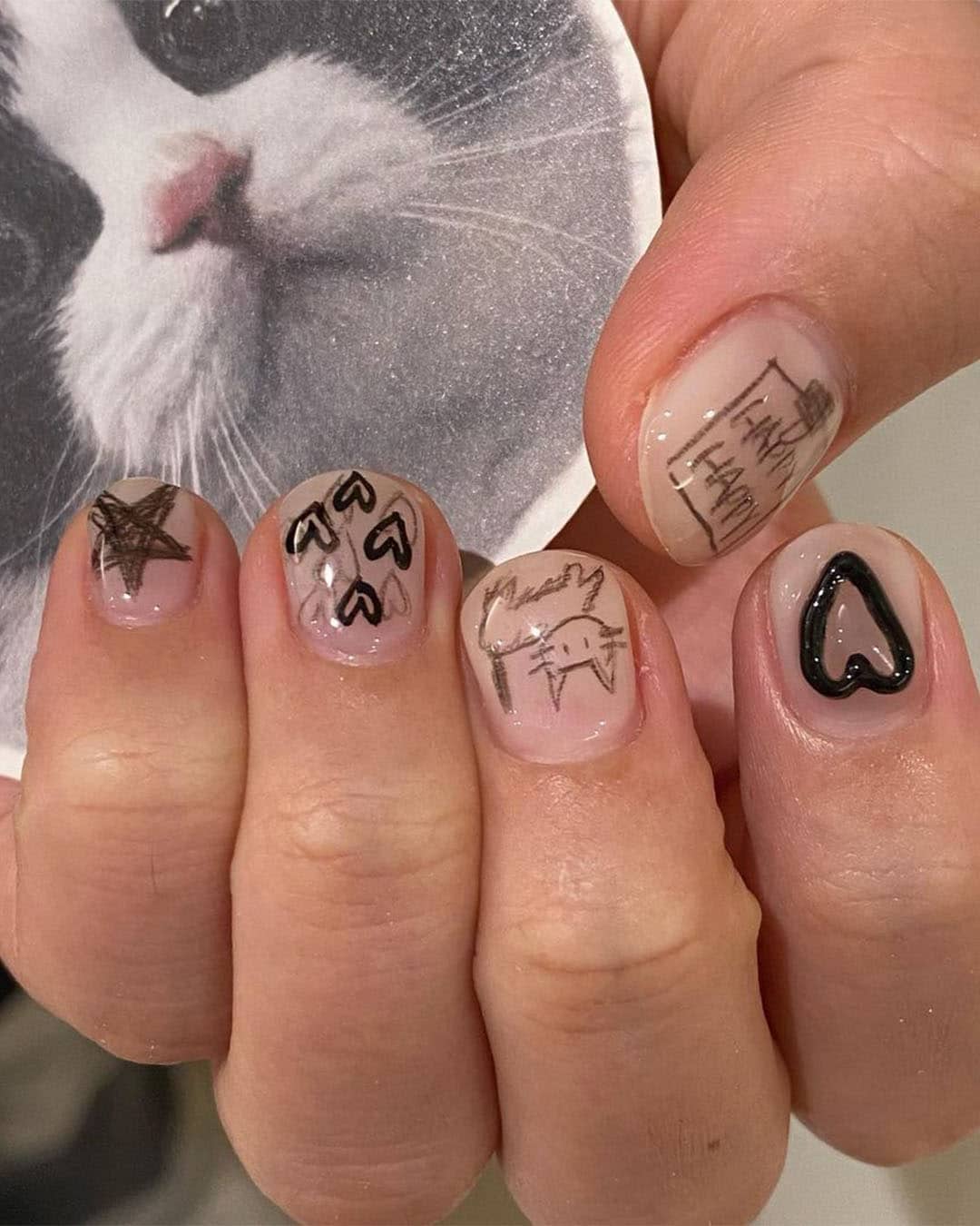 The biggest characteristic of hand drawing is that it’s ‘one and only’—unique in the world. Hand-drawn nails, created directly by nail artists, encapsulate distinctive features and concepts exclusive to each design.